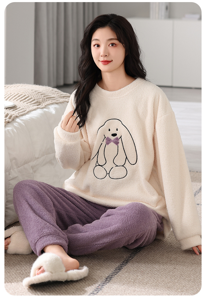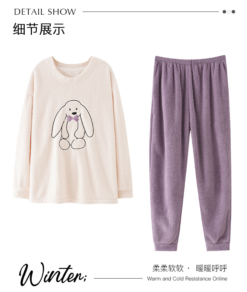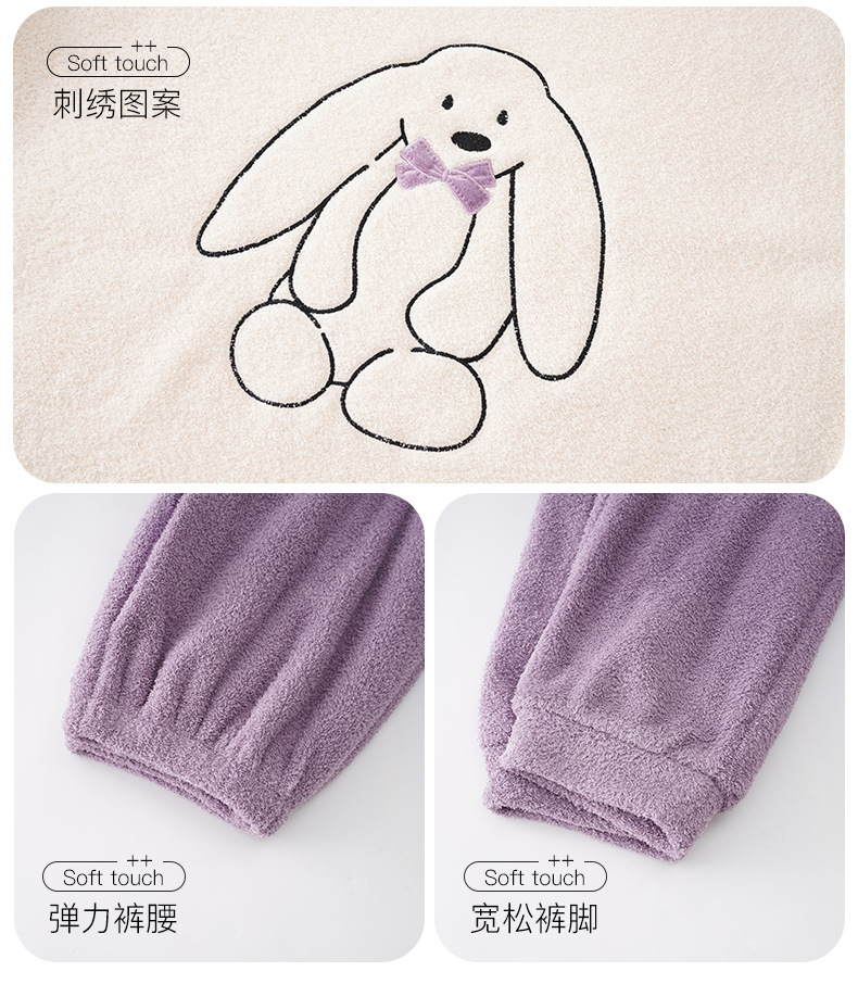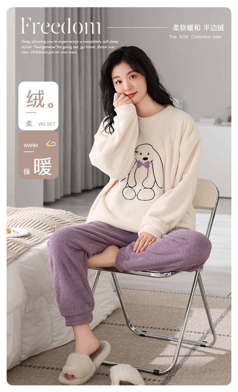 女款秋冬季软绵绵半边绒卡通可爱小熊熊毛绒少女睡衣裤家居服套装