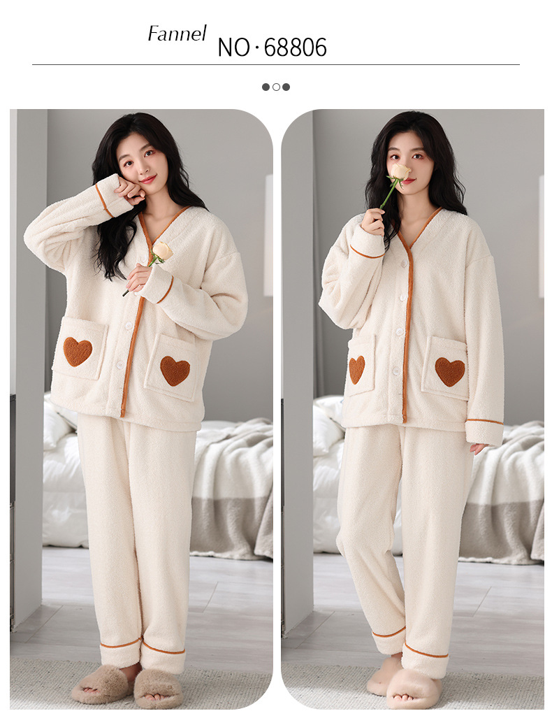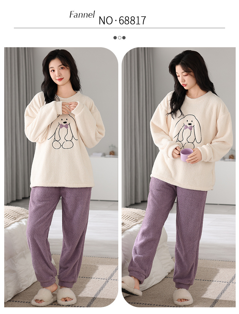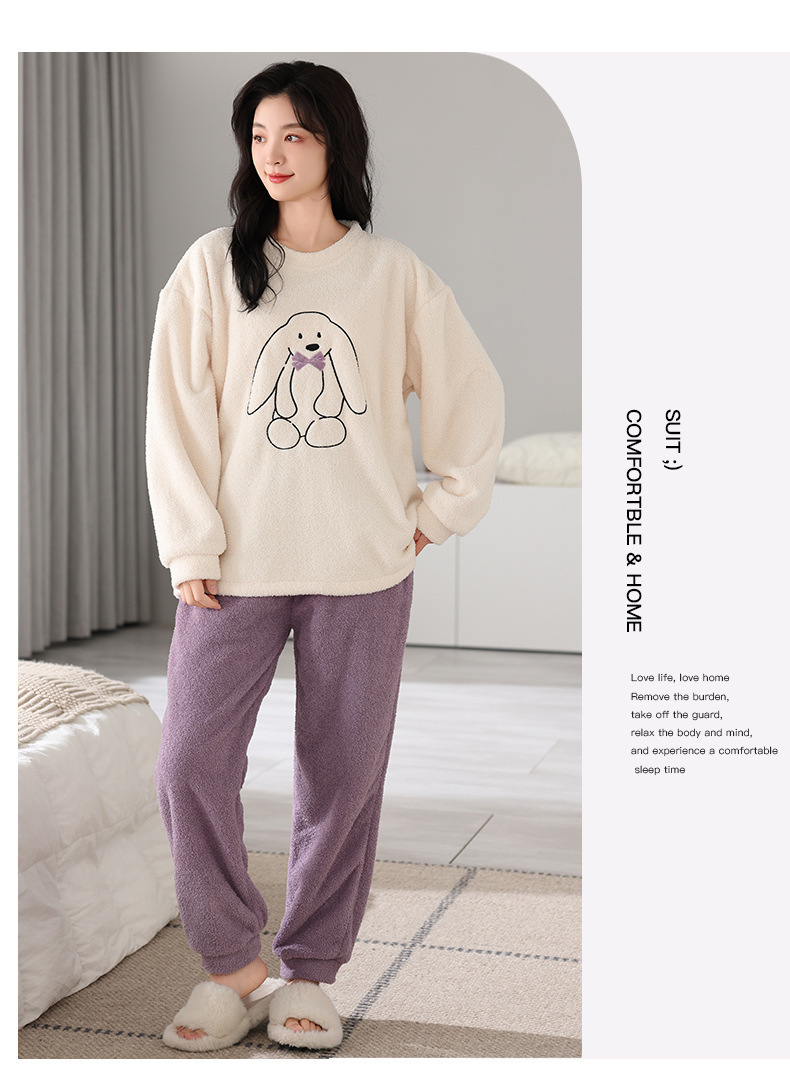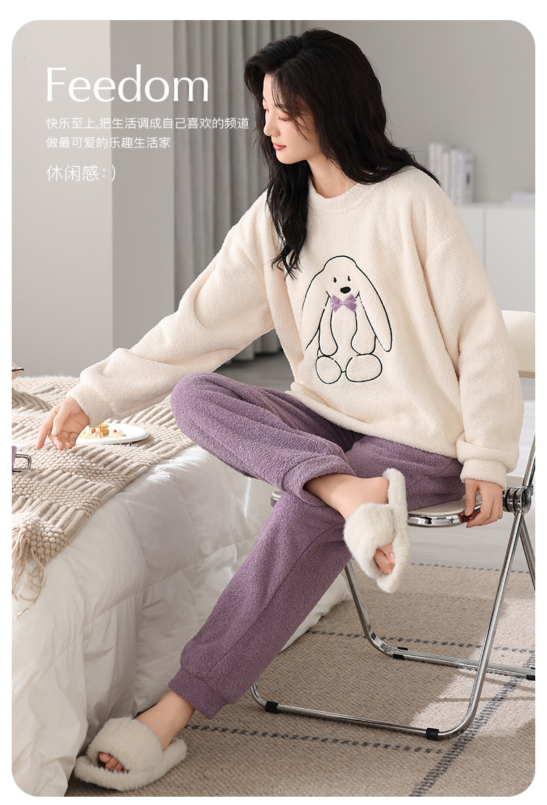 女款秋冬季软绵绵半边绒卡通可爱小熊熊毛绒少女睡衣裤家居服套装