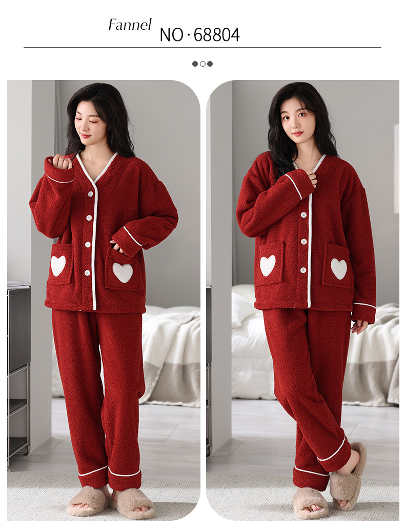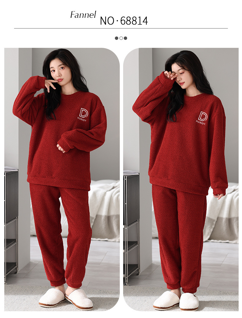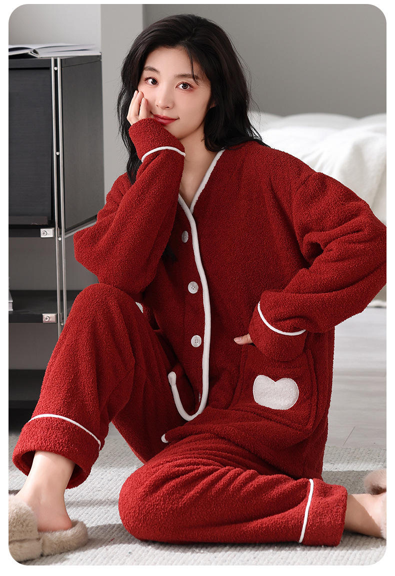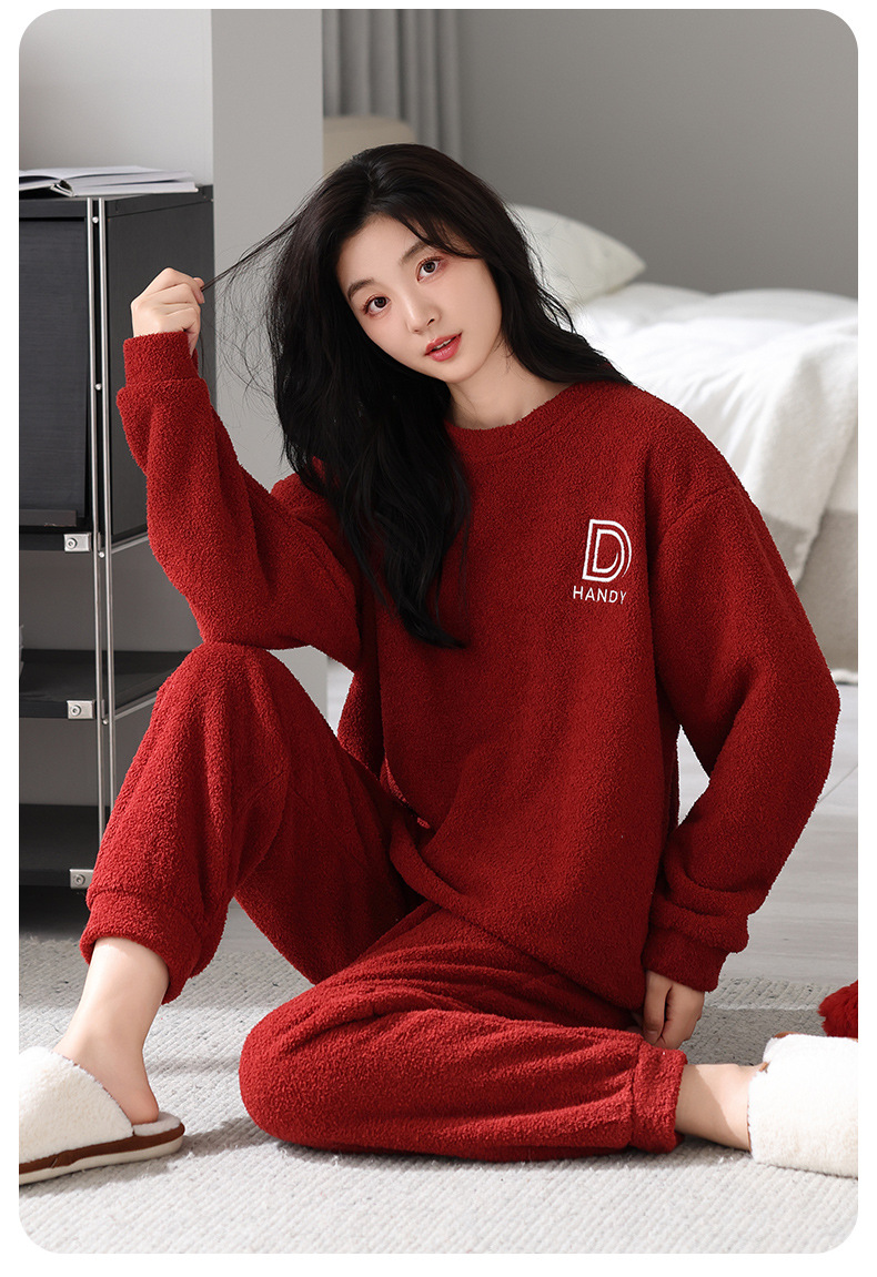 パジャマカップル服冬のサンゴのベルベットの厚いベルベットの赤い結婚新婚フランネルの家庭服セット