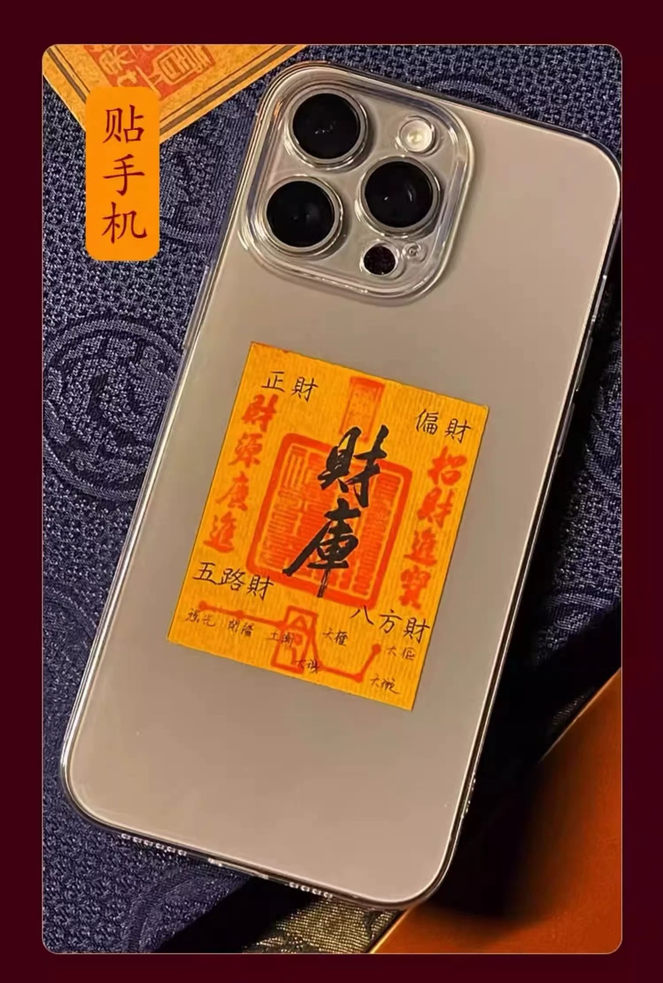 馬年五方財神財庫携帯電話ステッカー古風携帯電話ケース内装寺院祈願八方開運財運符