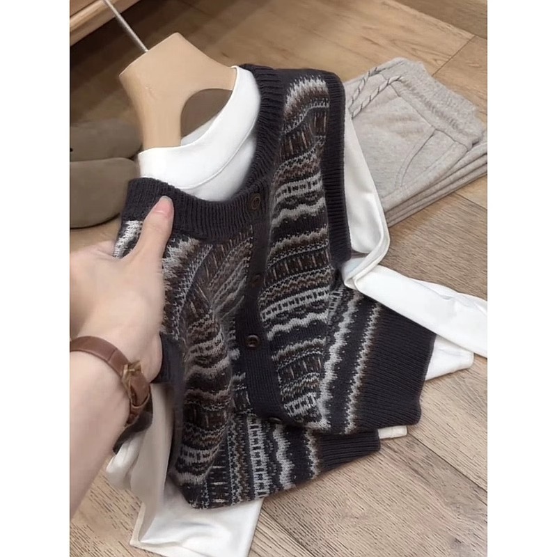 小众设计感提花栗子灰毛衣针织背心马甲叠穿女2026新款秋冬季上衣