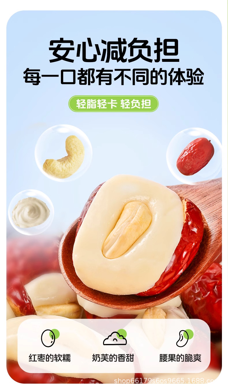 腰果泡芙ナツメ500g独立包装サンドイッチ腰果乳泡ナツメネット赤同金乳芙ナツメ乾燥果間食
