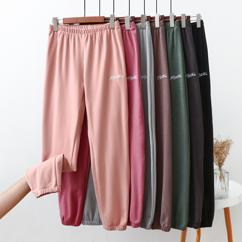 デロン素材のレディースワイドレッグパンツ、カジュアルスポーツパンツ、秋冬用ハイウエストルーズストレートパンツ、プリント入り保温ホームパンツ