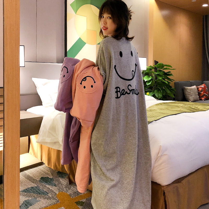 寝ているスカートの女性の春秋の冬の純綿の長袖のワンピースの中で長いタイプのかわいいレジャーの漫画の妊婦のパジャマの部屋の服