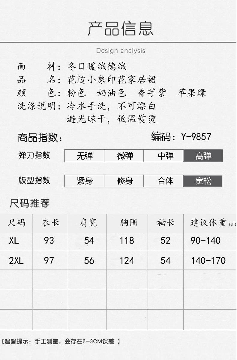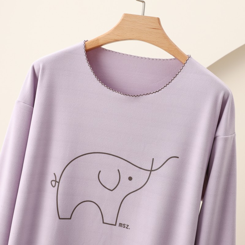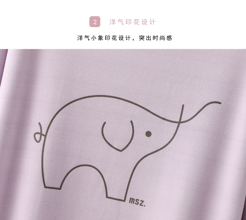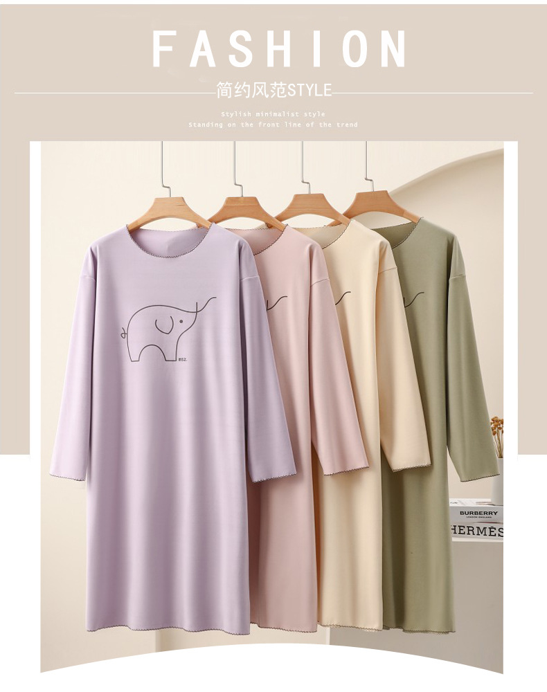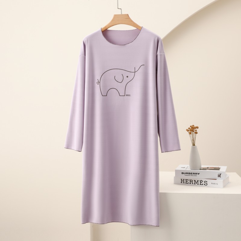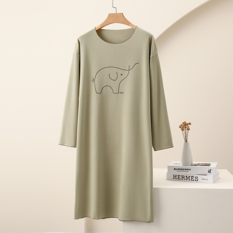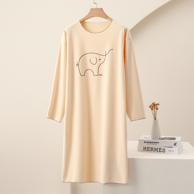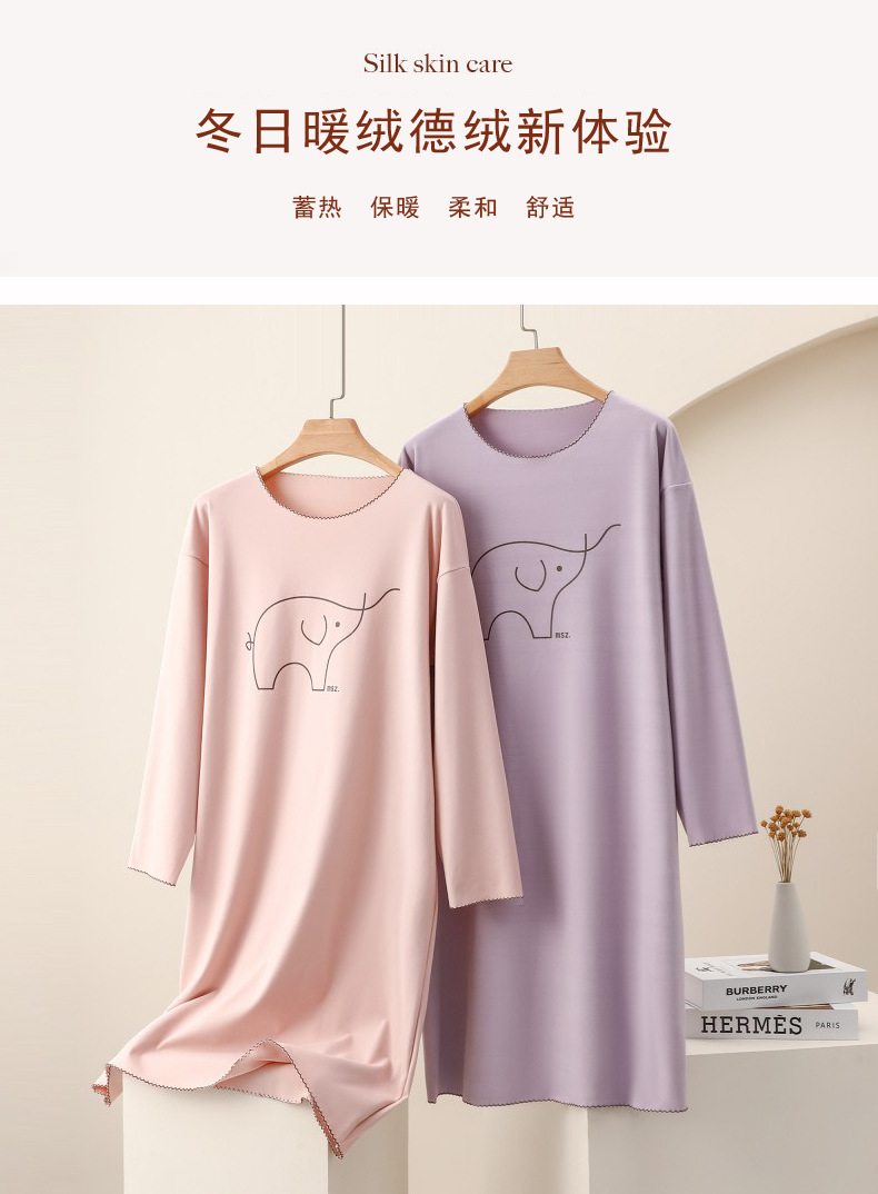デロン保温長袖ナイトガウン女性用秋冬甘い象柄プリント妊婦用ホームウェアゆったり大きいサイズワンピース