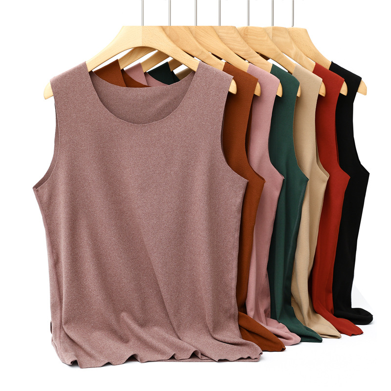 両面パイル保温ベスト女性秋冬加肥大サイズベルベット厚手シャツ無痕下着防寒綿ベスト