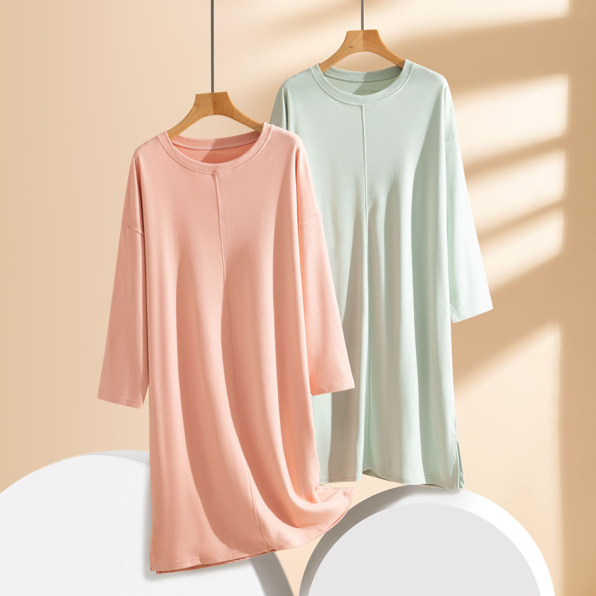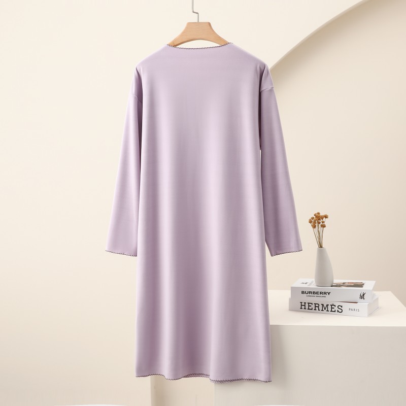 德绒大码睡裙女士圆领长袖长裙宽松休闲连衣裙秋冬亲肤保暖家居服