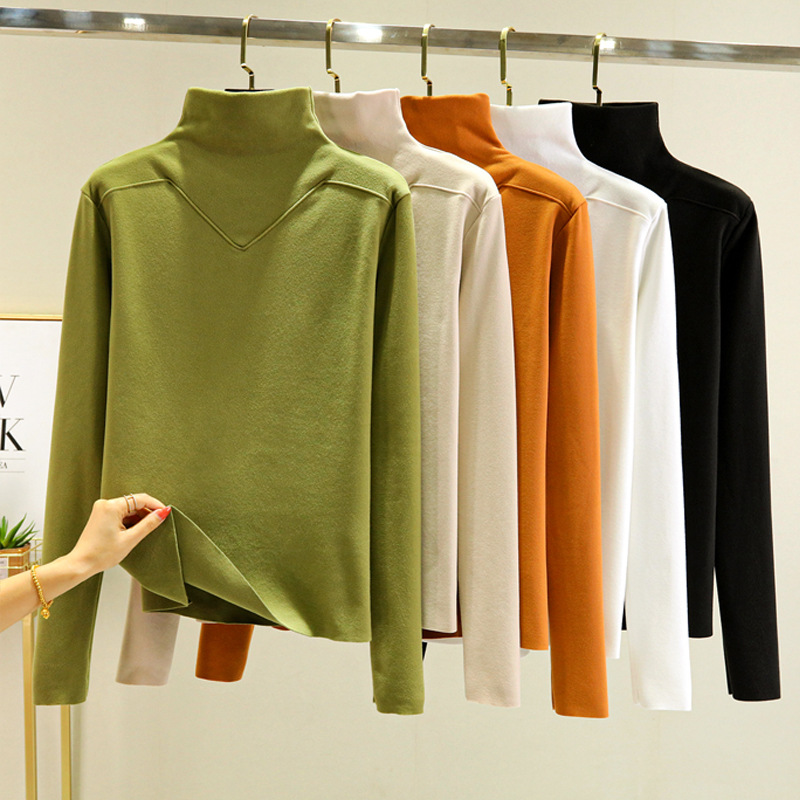 両面徳絨毛保温服秋冬天加絨毛長袖tシャツ女性高襟底シャツ修身発熱内に秋衣をかける