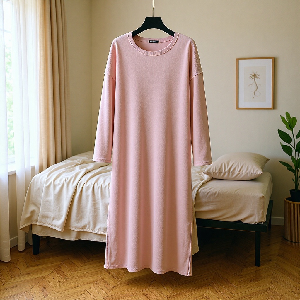 2025冬季新品双面德绒睡裙长袖女款套头家居服睡衣可外穿中长款