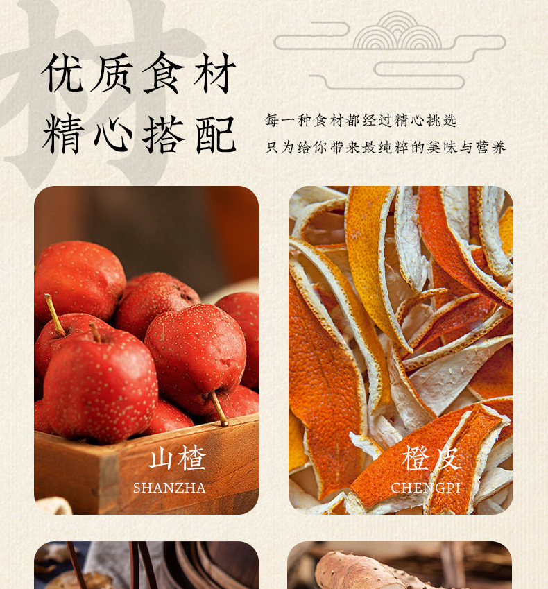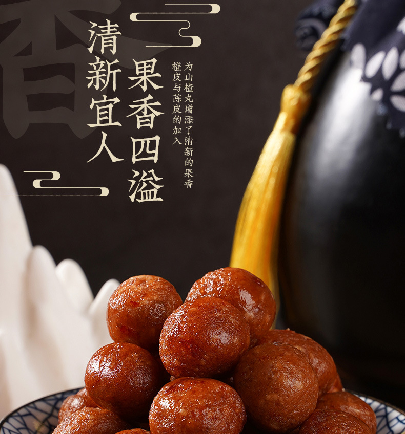 鶏砂肝六宝サンザシ丸薬、無糖みかんの皮、ポリア、ヤムイモ、サンザシボールスナック、サンザシ六宝丸薬、個包装