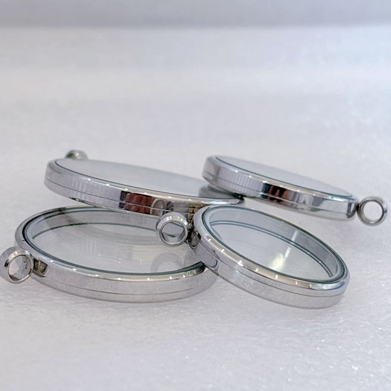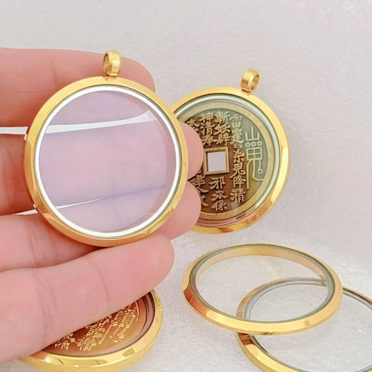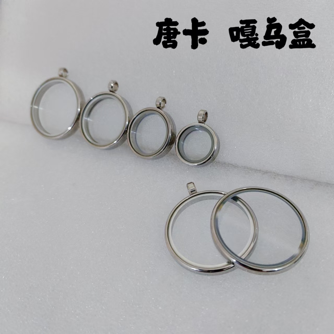 1.5 2.0小唐カガウ箱ペンダント円形ステンレスアクセサリーの縁が透明で開けられます。