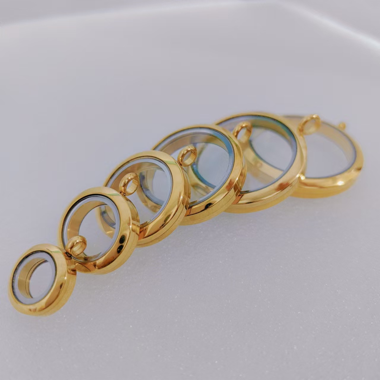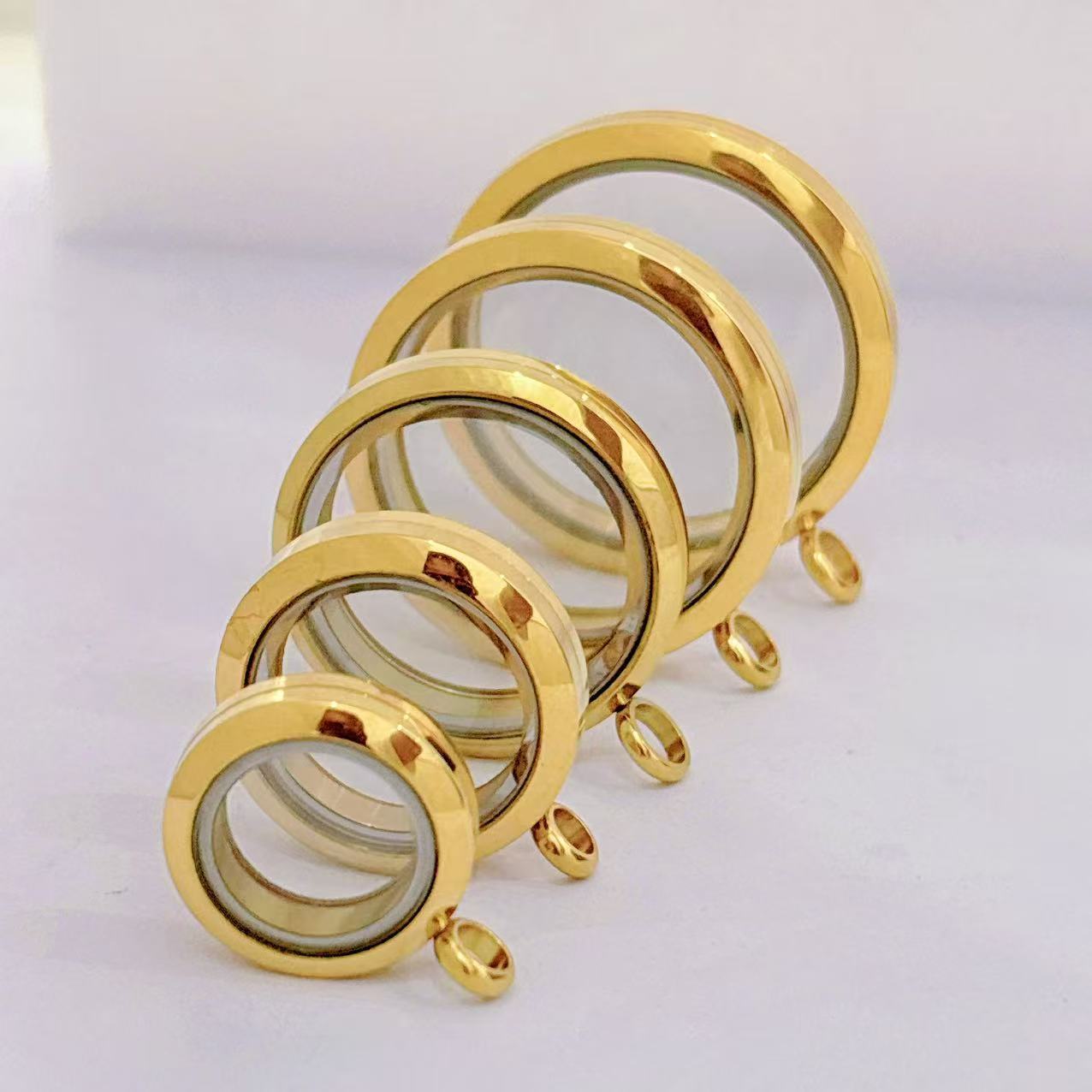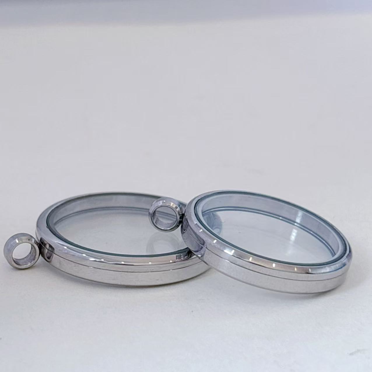 1.5 2.0小唐カガウ箱ペンダント円形ステンレスアクセサリーの縁が透明で開けられます。