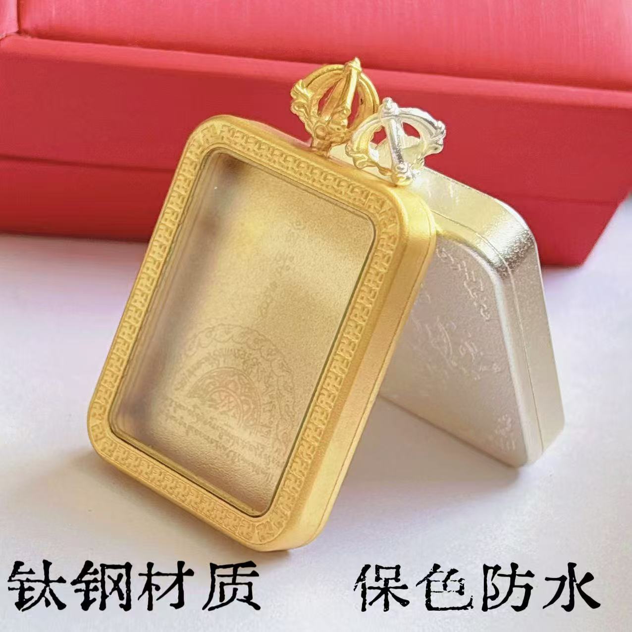 シンプルなステンレス製の唐卡ケース、ガウボックス。開閉可能で透明な両面朱砂ペンダント付き。軽やかな高級感で色褪せないネックレス。