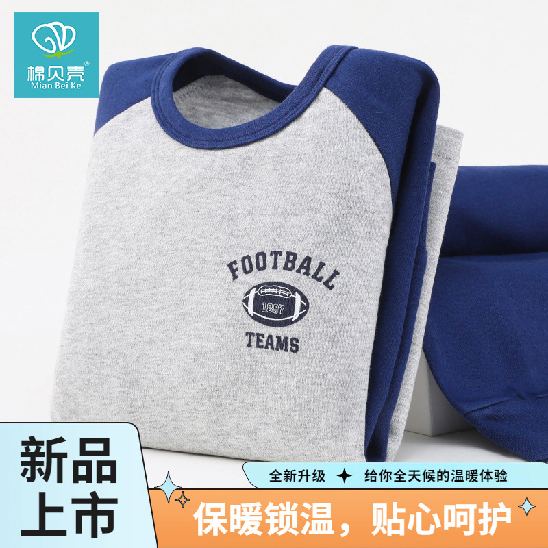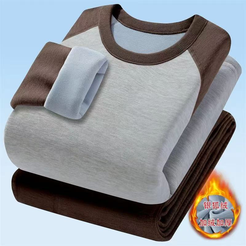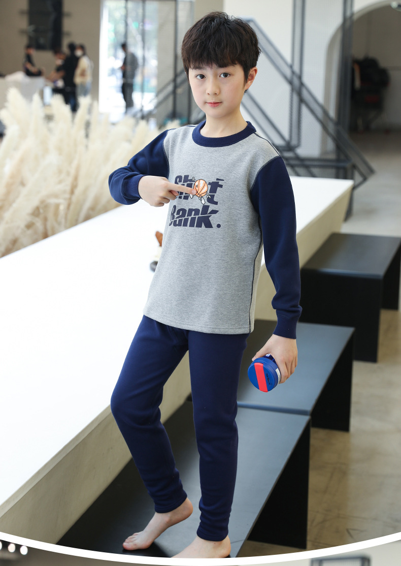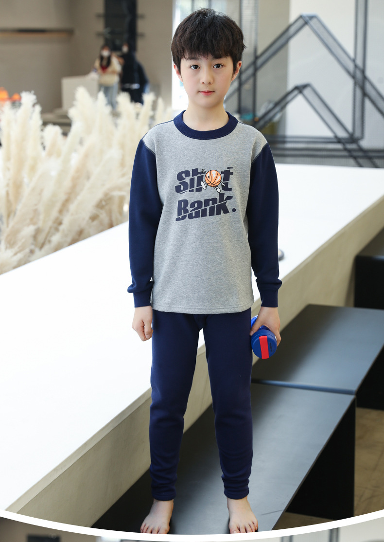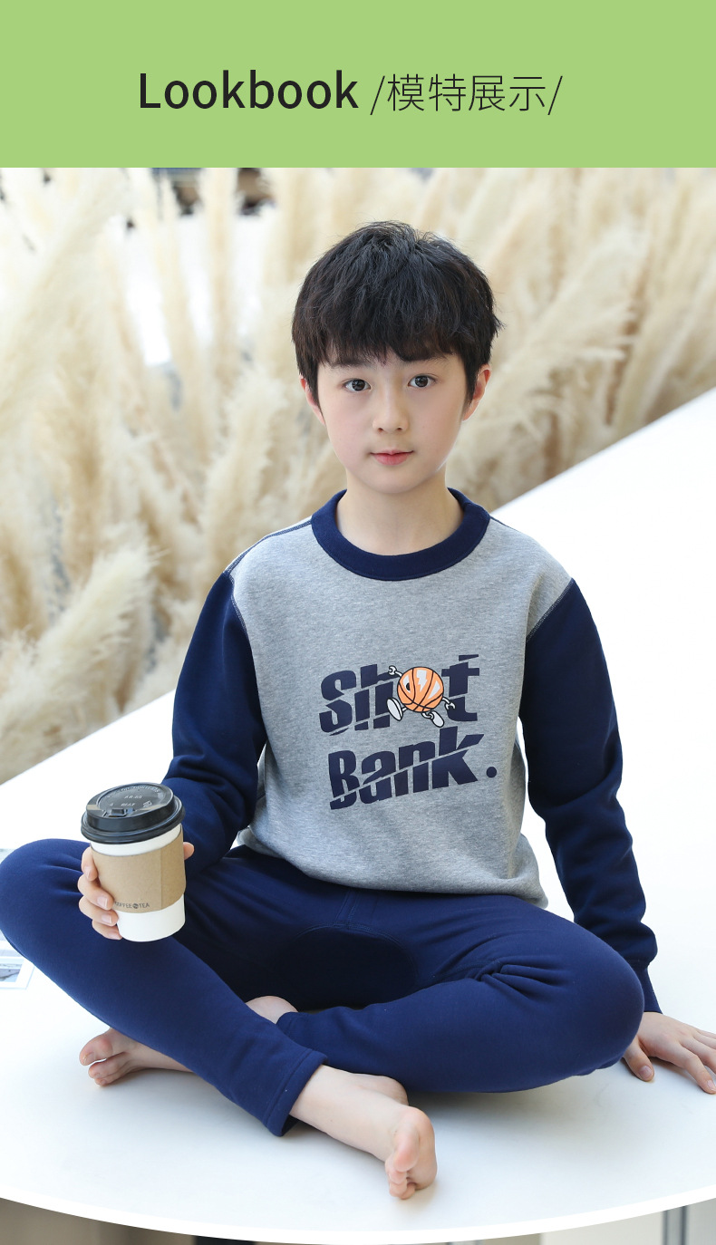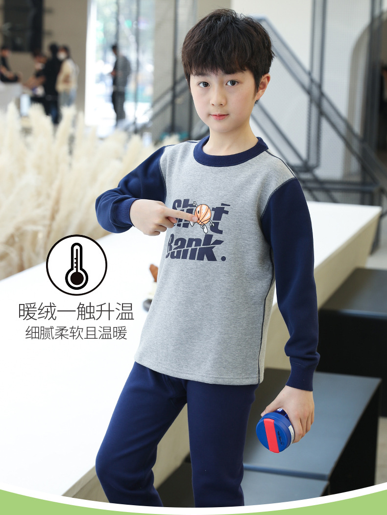 新商品中大童秋衣秋ズボンセット男性高校生ベルベット保温下着冬中学生卸売り