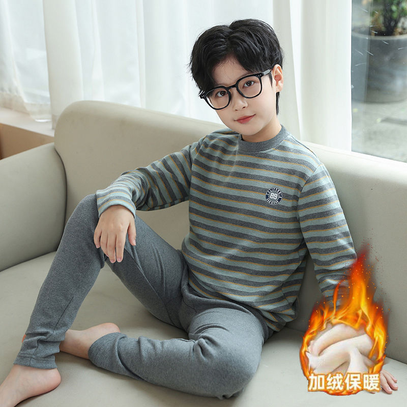 男児とベルベットの下着セット秋冬の大童男の子の秋衣秋ズボン子供の冬服の縞模様の下地服