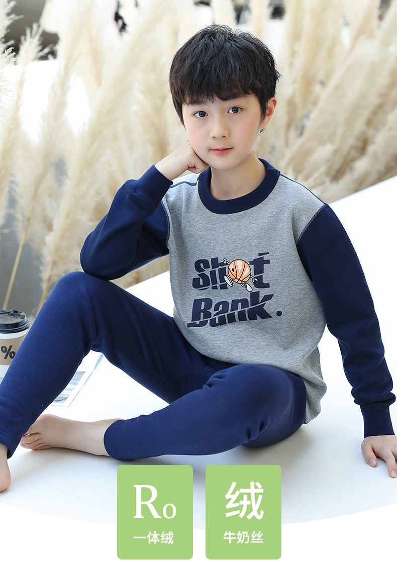 子供用骨なし下着セット男児秋衣秋ズボンにベルベット秋冬の下着中の大童男の子保温服