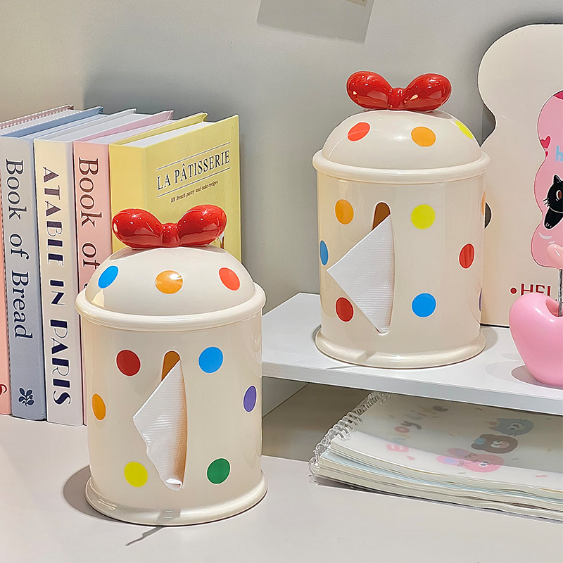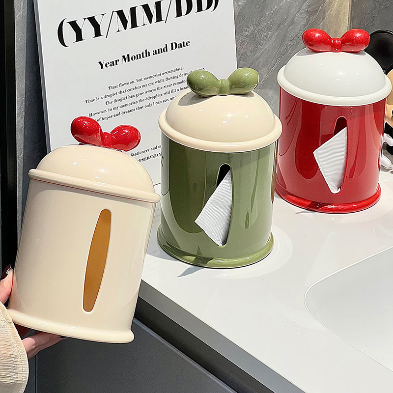 2025高級感蝶結び紙桶客間寮高颜値ティッシュ収納ケースデスクトップクリエイティブ紙桶