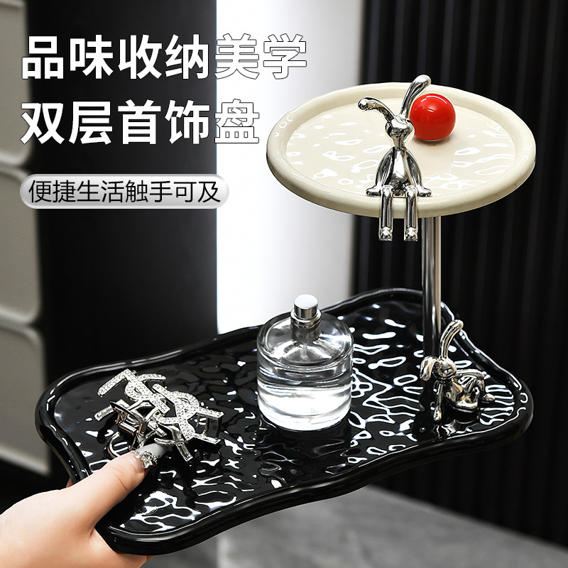 家庭用の軽い豪華な水波紋シンプルな化粧箱アクセサリー盤ドーパミンのデスクトップ二重玄関鍵眼鏡収納