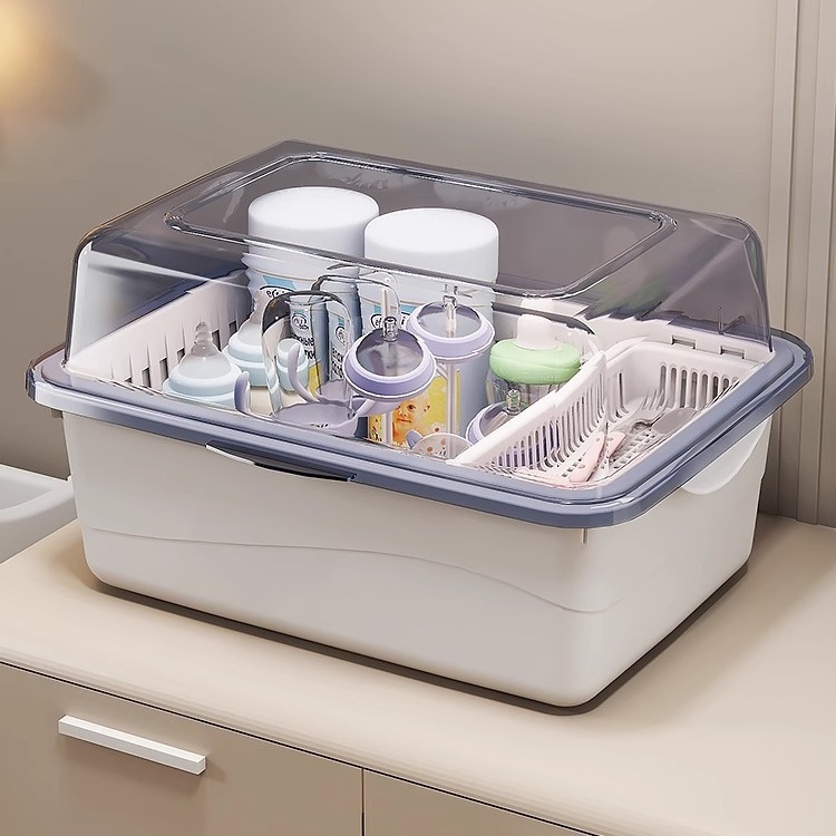 奶瓶收纳箱婴儿用品防尘带盖沥水架宝宝餐具玩具新生儿辅食收纳盒