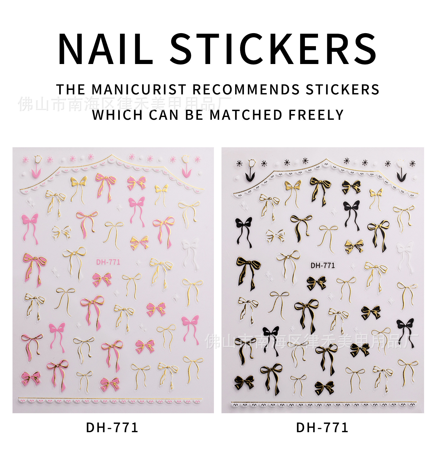 2D新作立体ネイルシール高級感蝶結びネイルシール箔押し金抜きチューリップネイルシール