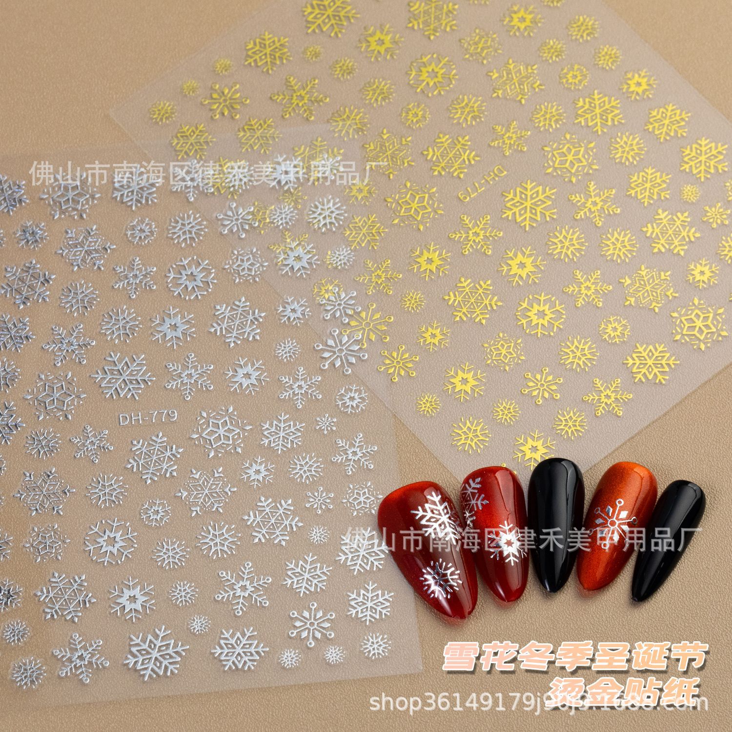 新しい冬の白い雪花クリスマスシーズン5Dレーザー箔押し美甲貼り愛幽青落雪爪シール