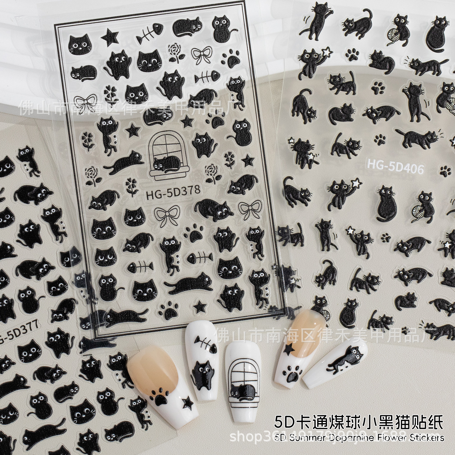 漫画かわいい黒石炭ボール子猫ネイルアートステッカーエンボス加工立体かわいい子猫ネイルアクセサリー粘着裏地付き