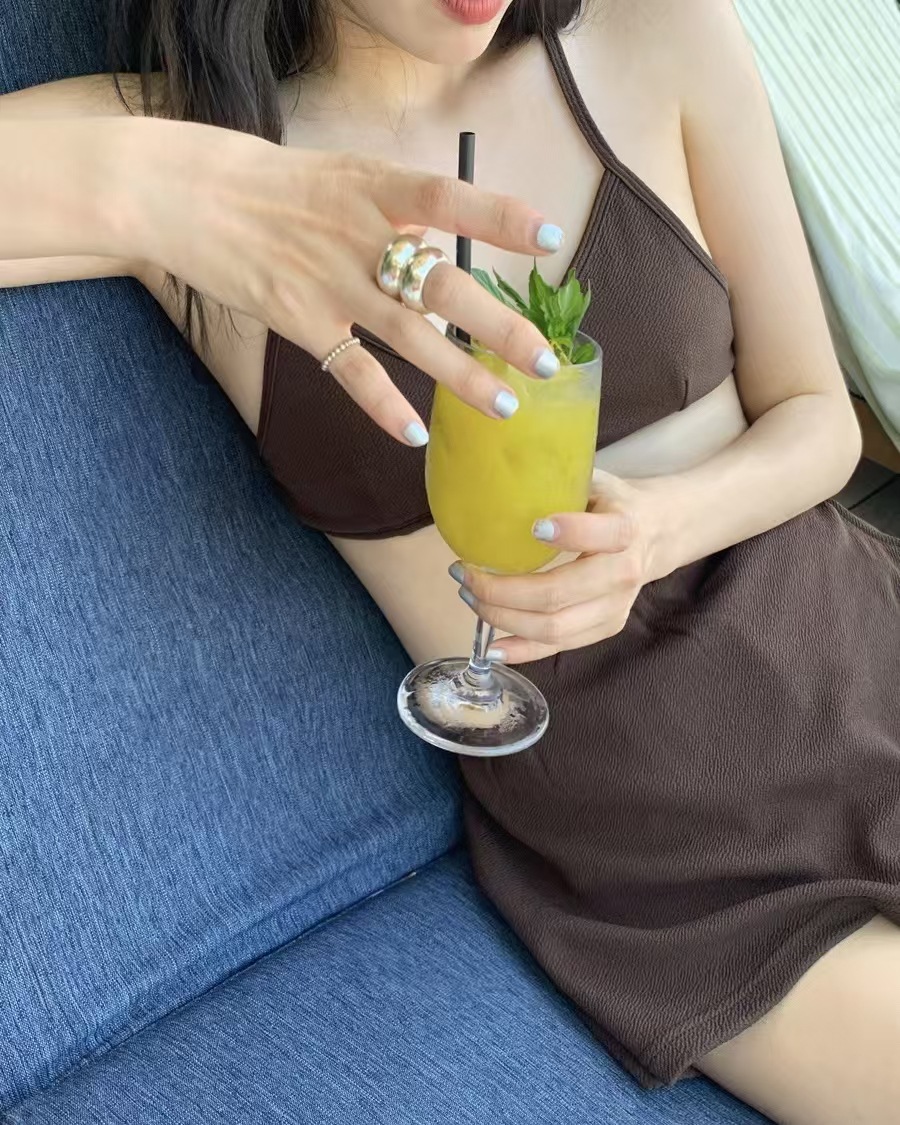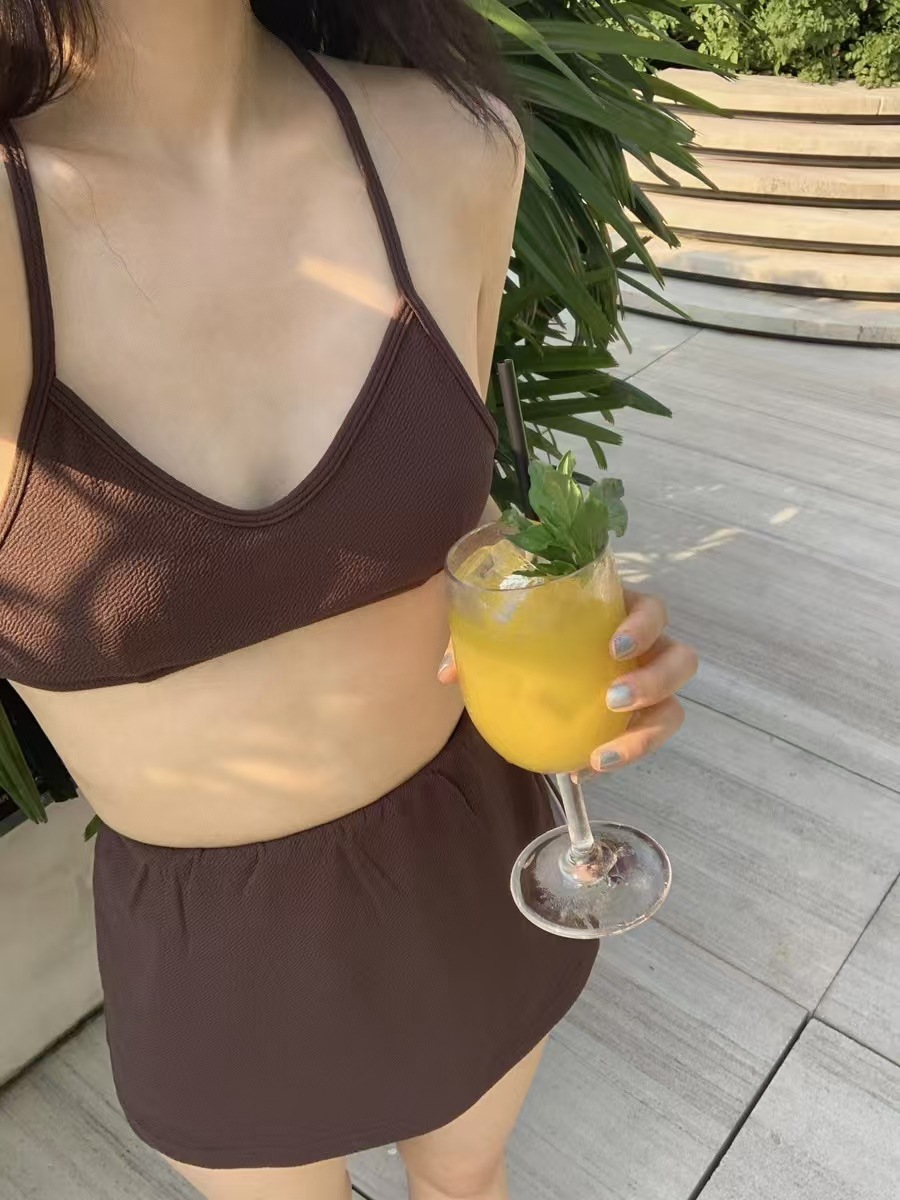 Ins風セクシー女神少女小胸分体スカート式水着純欲小香風露背三点セット水着女