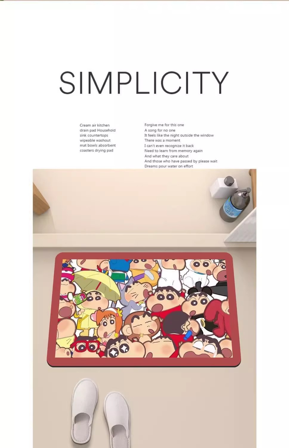 クレヨンしんちゃん珪藻泥マット玄関玄関ドアマット浴室マットトイレ吸水滑り止めマット卸売り