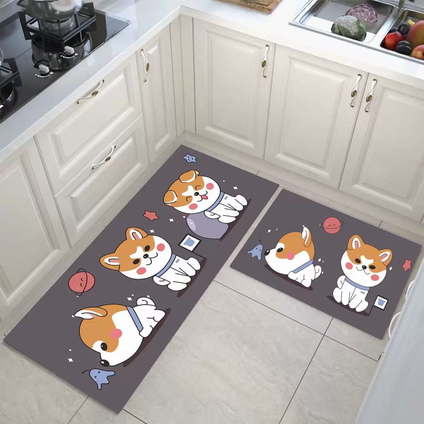 卡通动物硅藻泥地垫家用长条吸水吸油厨房垫两件套耐脏易打理地垫