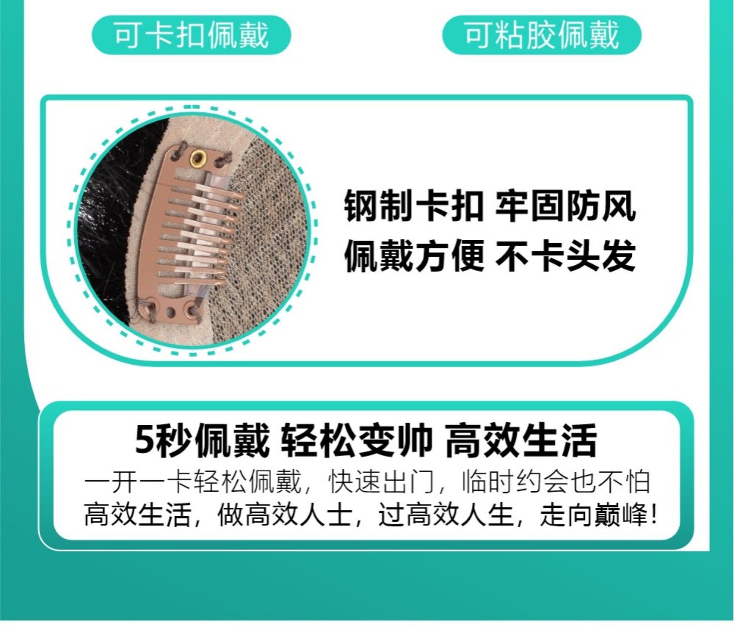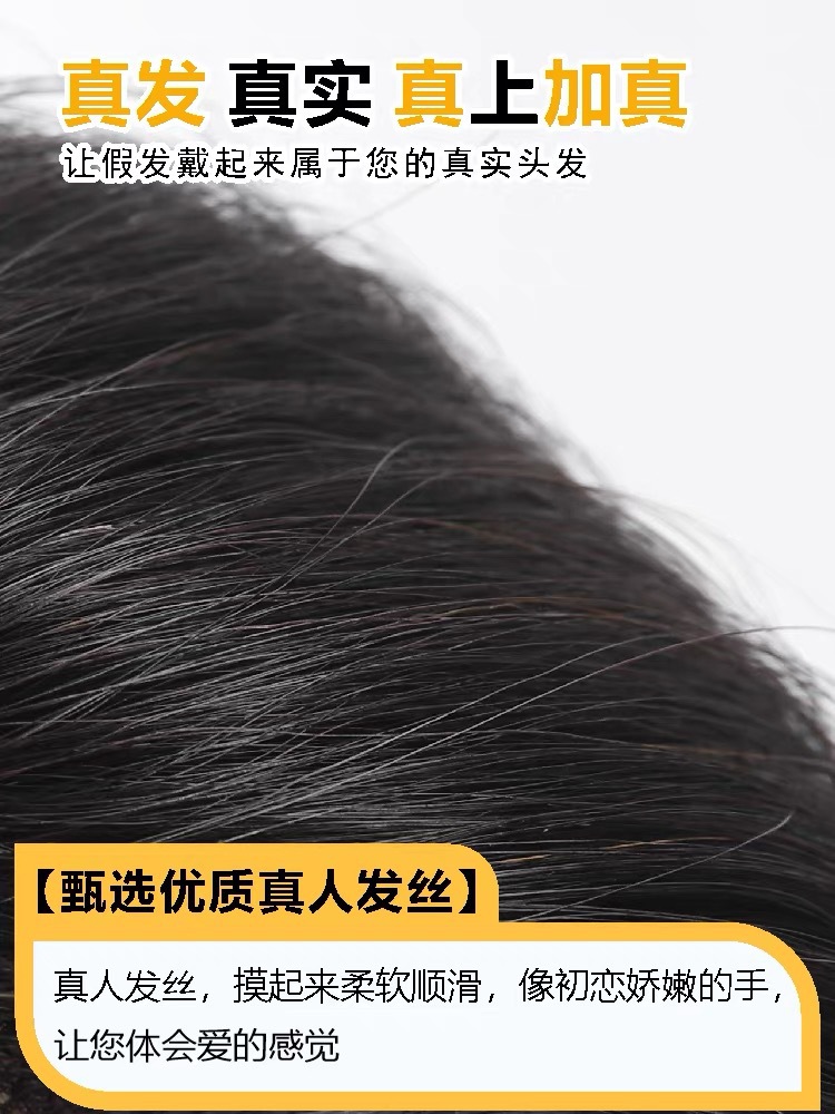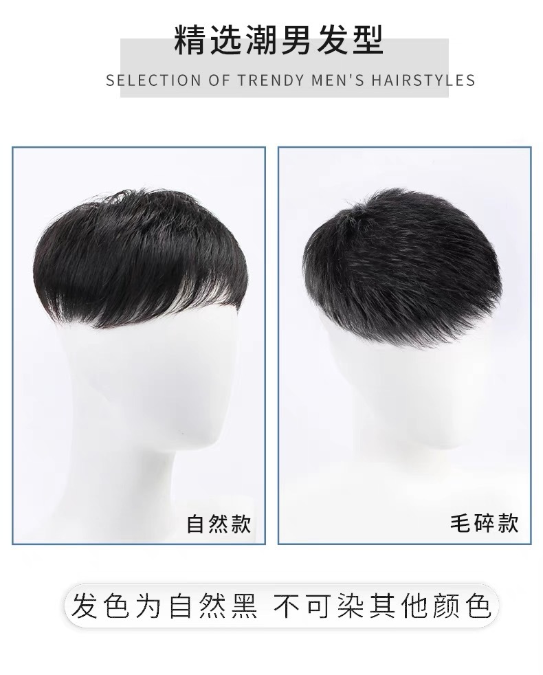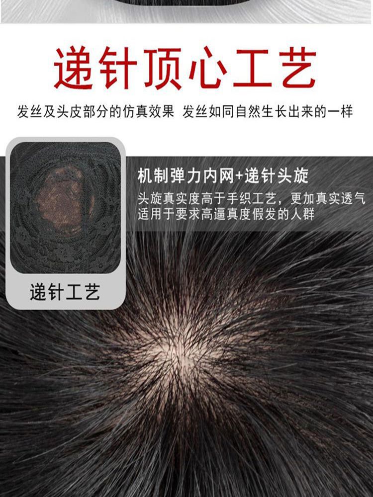 男士假发真发美式前刺头顶假发片男款短发自然无痕隐形男生补发片