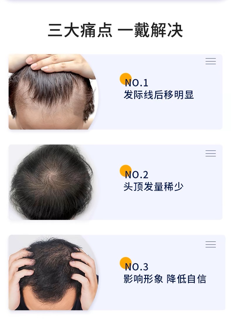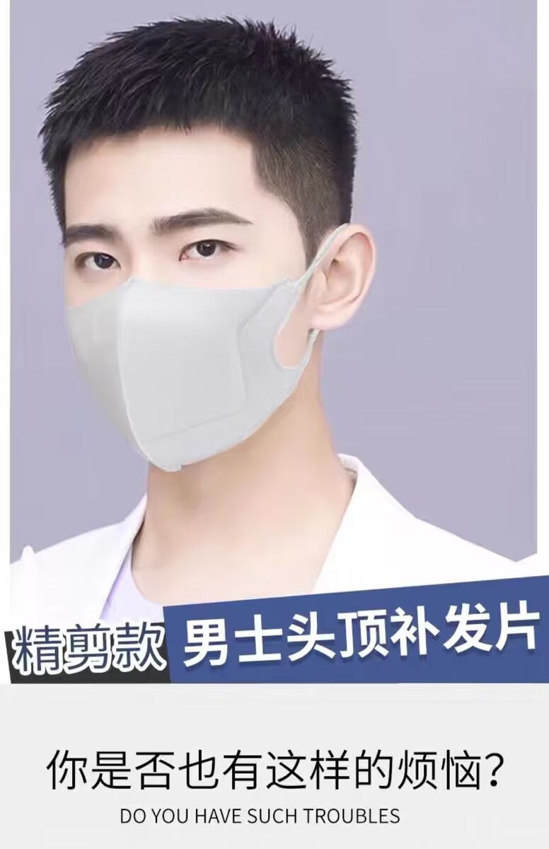 かつらの男性のショートヘアは全部見えないです。