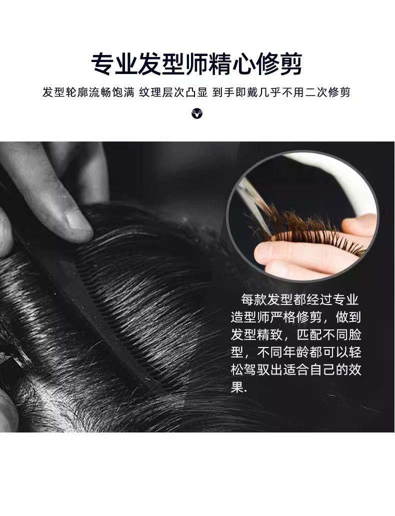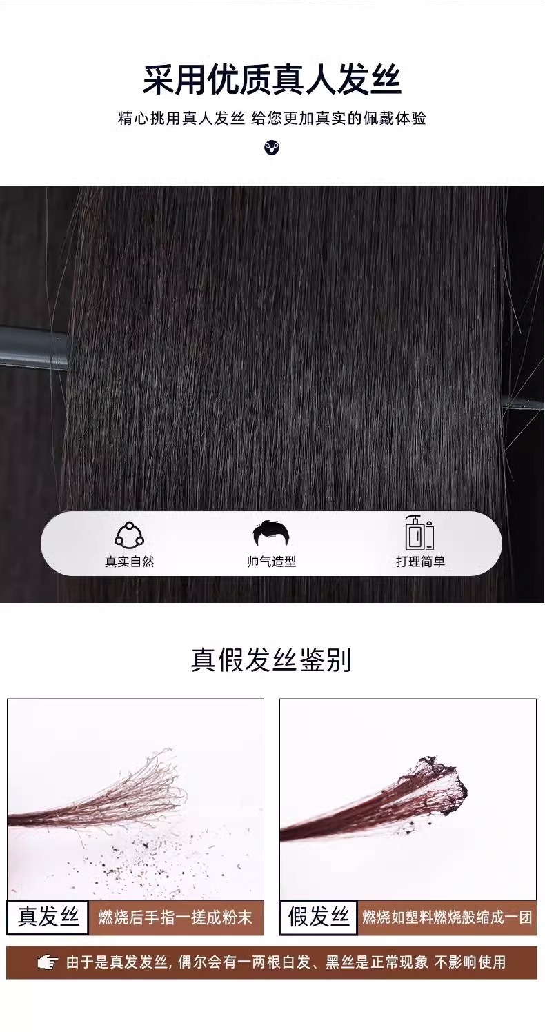 全真发手织毛寸男士假发超轻薄隐形无痕新款防肤递针双工艺补发块