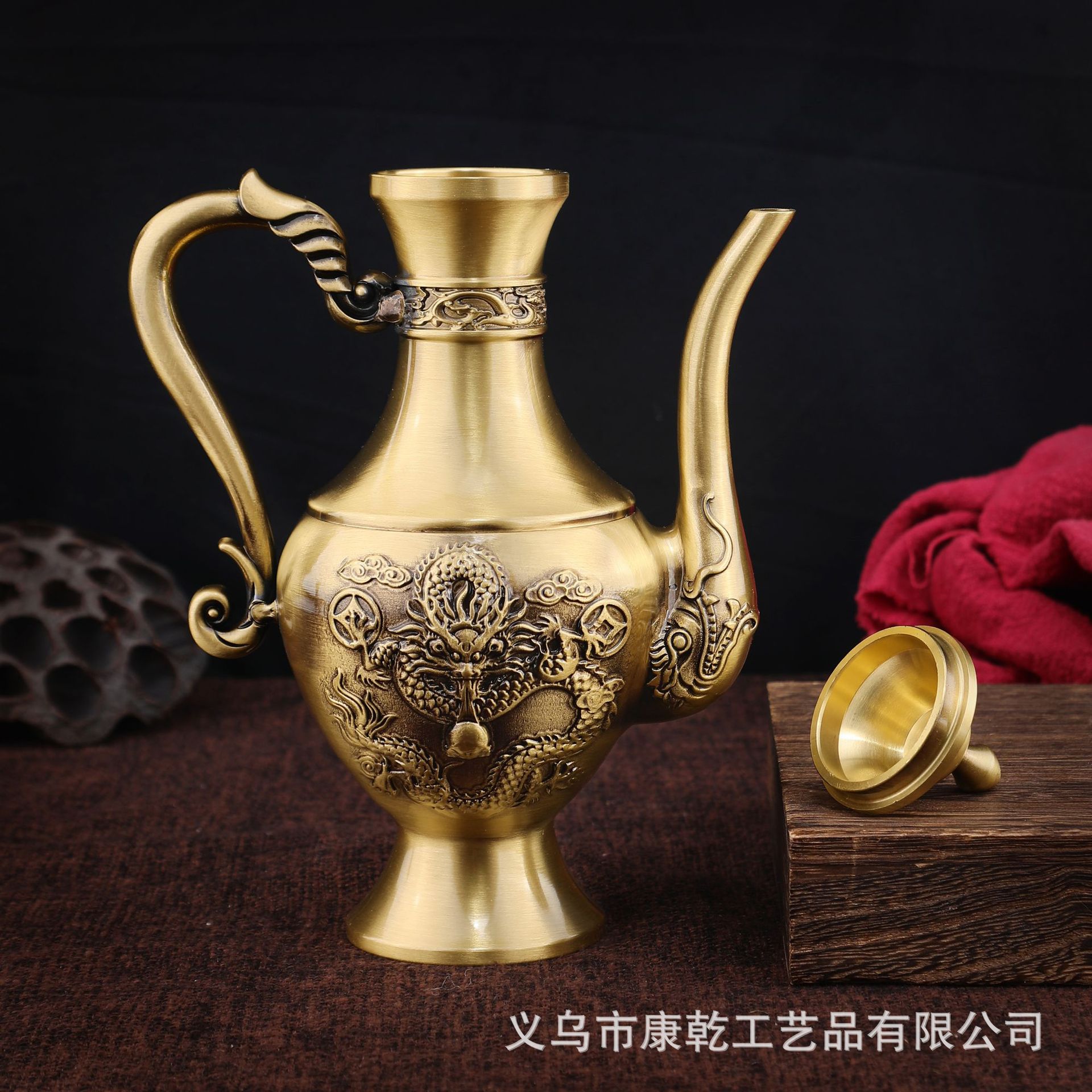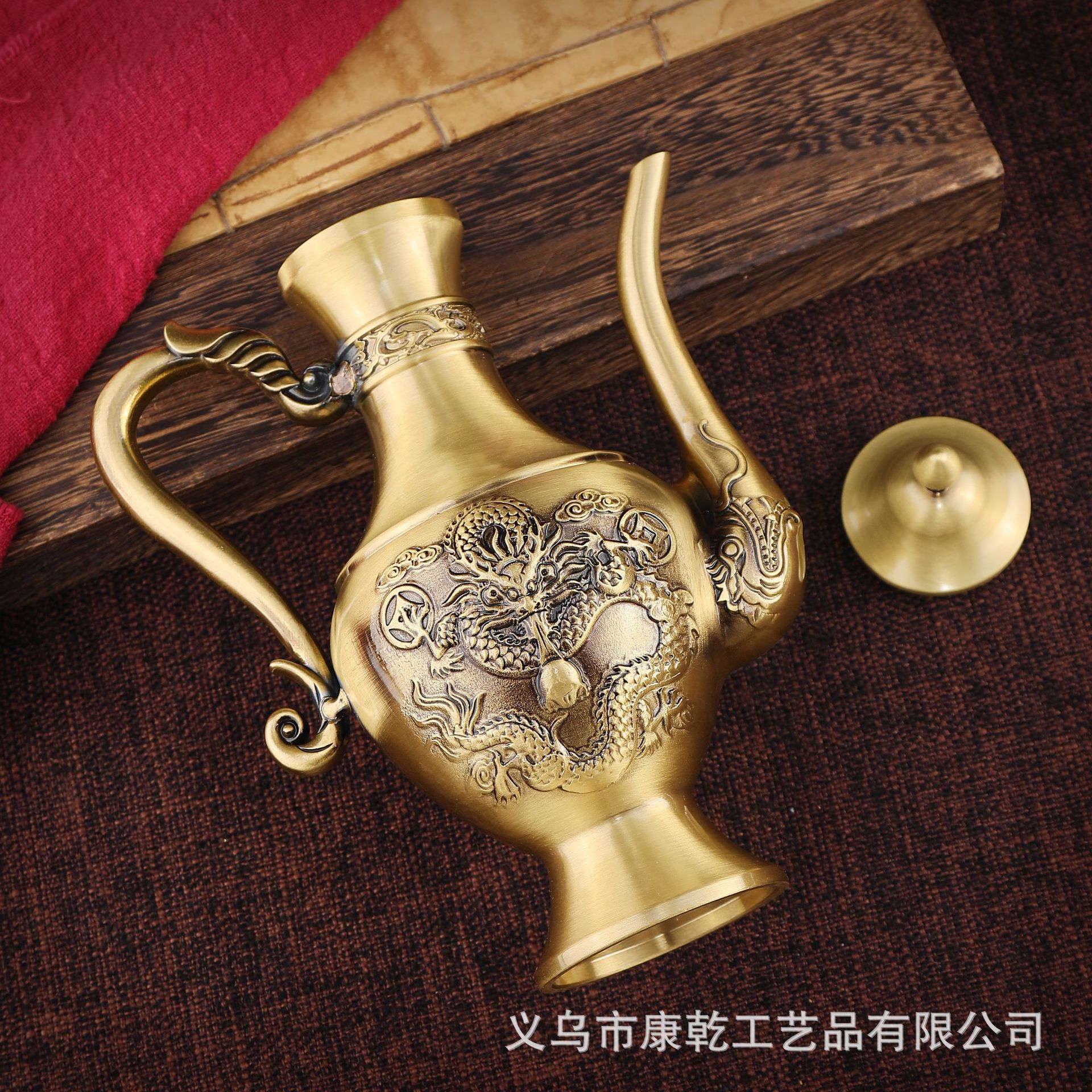 黄銅酒壺家庭用酒具金属酒壺祥雲龍酒壺家庭用置物