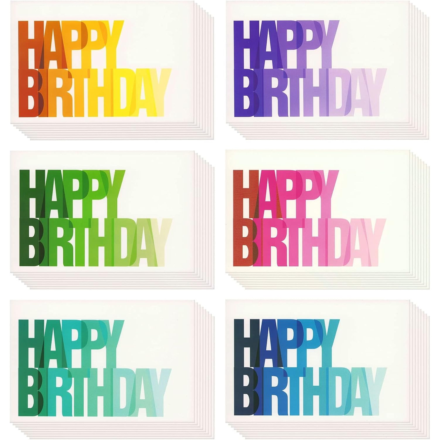 新款happy生日派对贺卡 6种彩色渐变空白贺卡送家人朋友