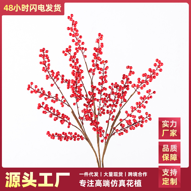 緑植オリーブの枝卸売り3叉毛糊帯果偽枝結婚祝いホテル装飾北欧装飾生け花