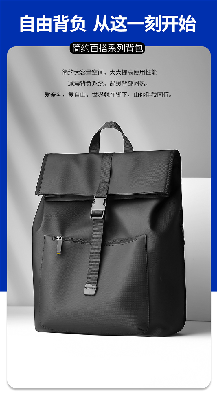 クロスボーダー大容量15.6インチビジネスコンピュータバッグ巻き口カバーランドセル潮牌機能シンプルなランドセル