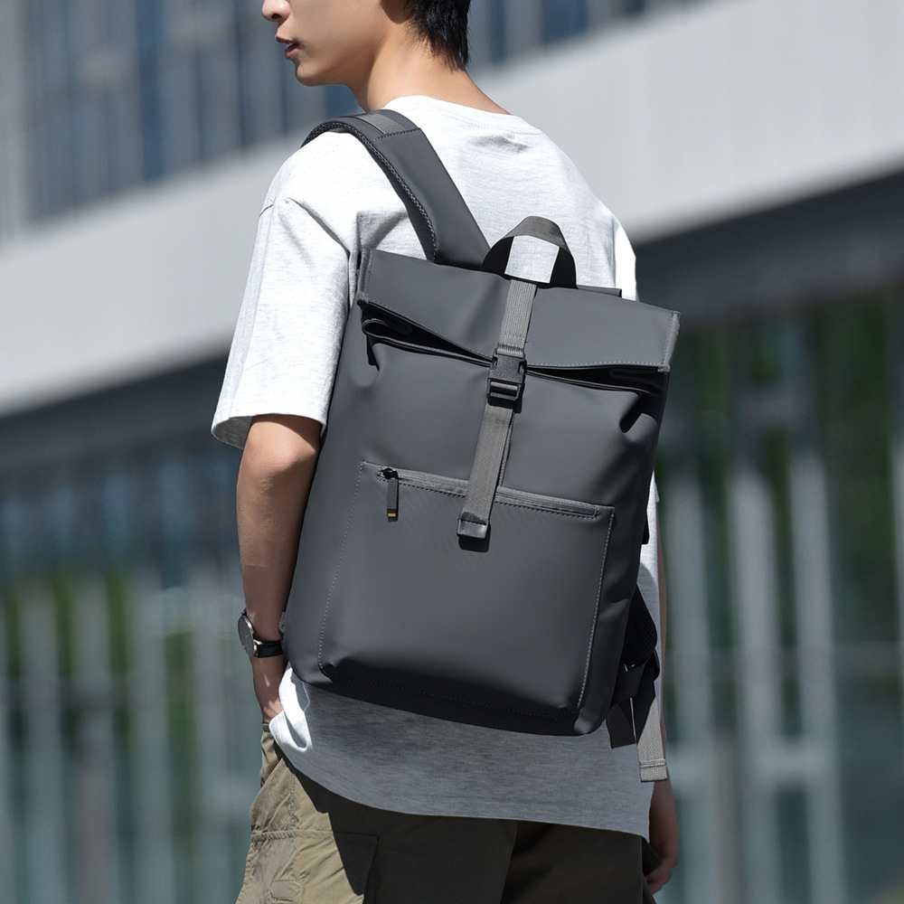 メンズロールバックパックロールカバーバックパック屋外防水耐摩耗性大容量カジュアルトラベルバッグ学生コンピュータバッグ