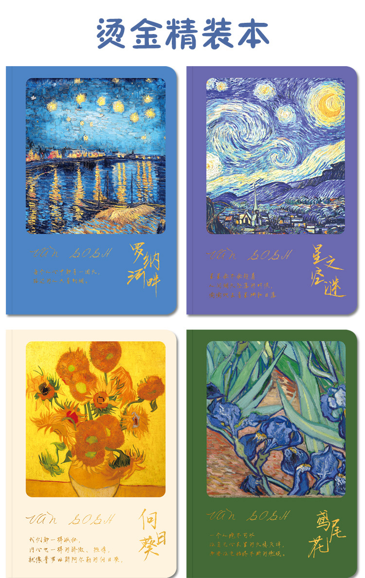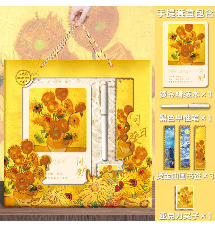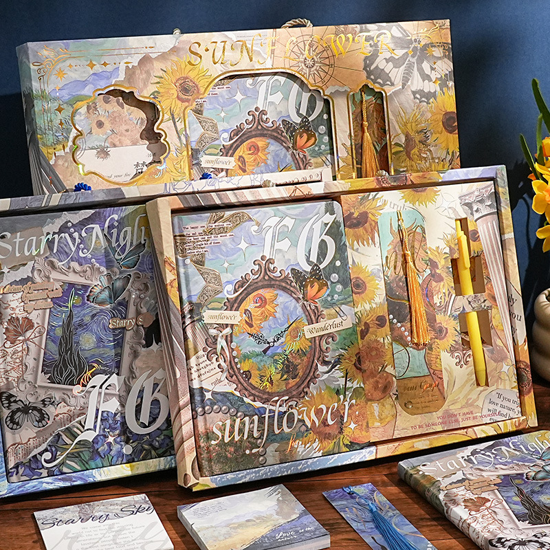 高価値ハンドブックギフトボックスゴッホレトロ文学油絵ノートブックギフトボックス学生白紙メモ帳