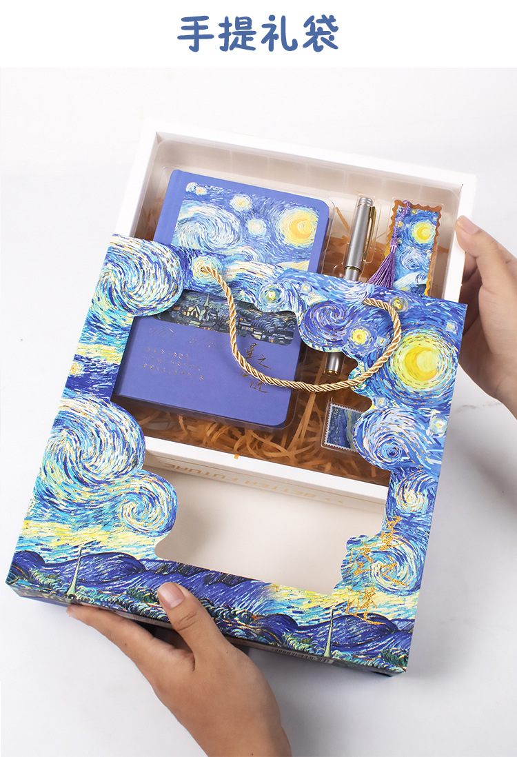 歓喜ギフトボックスゴッホの夜の新作星空手提げギフトボックス文房具ボックスセットプレゼント学生ノートセット