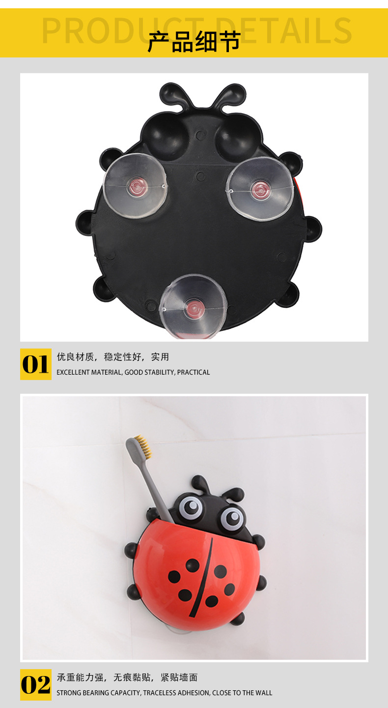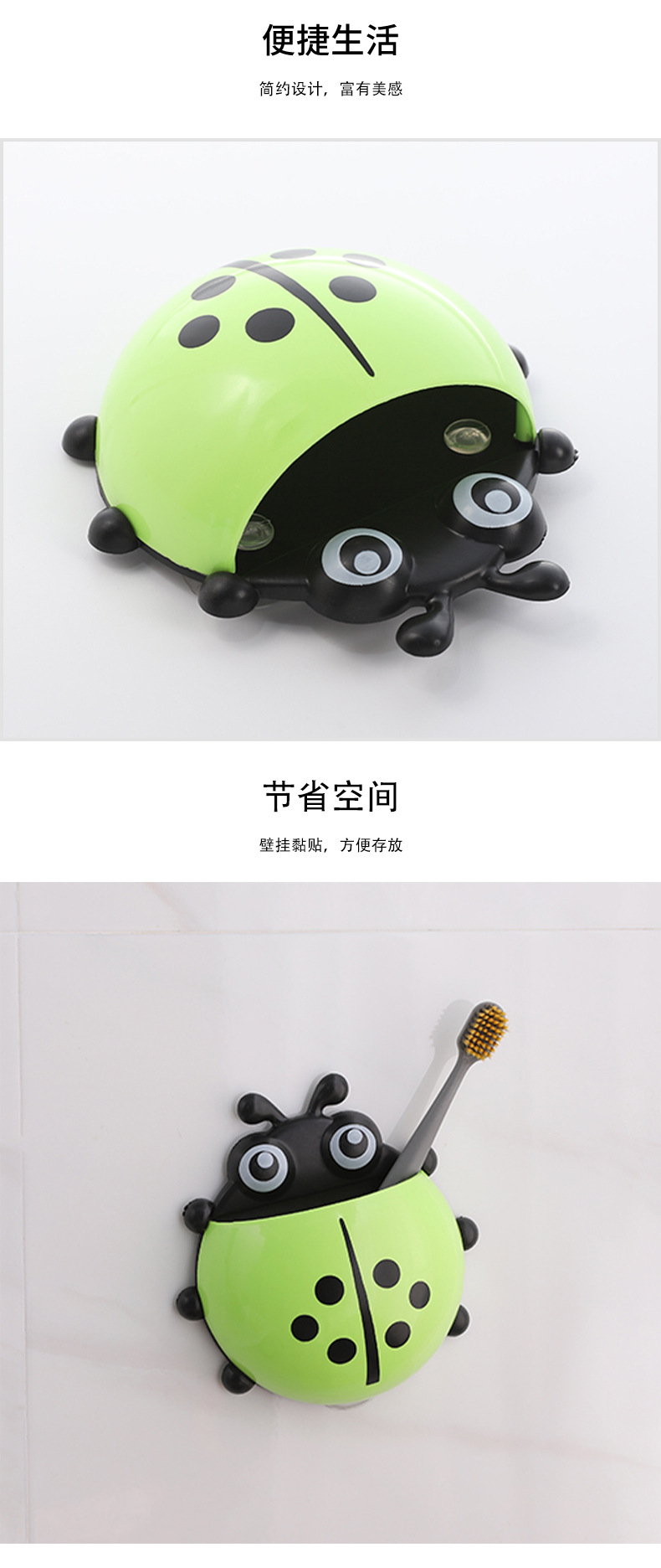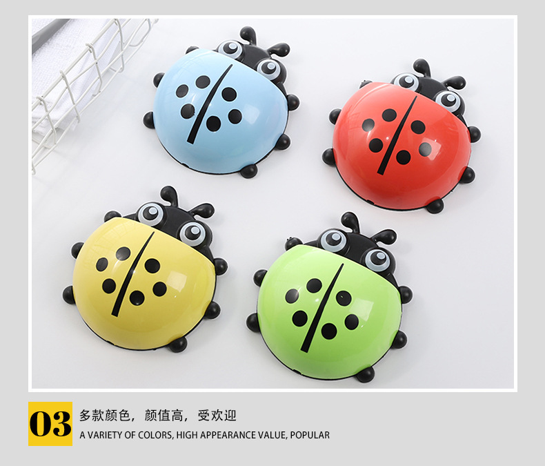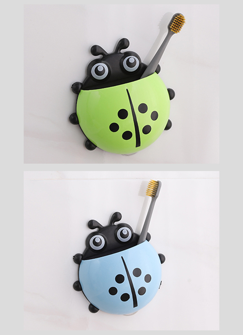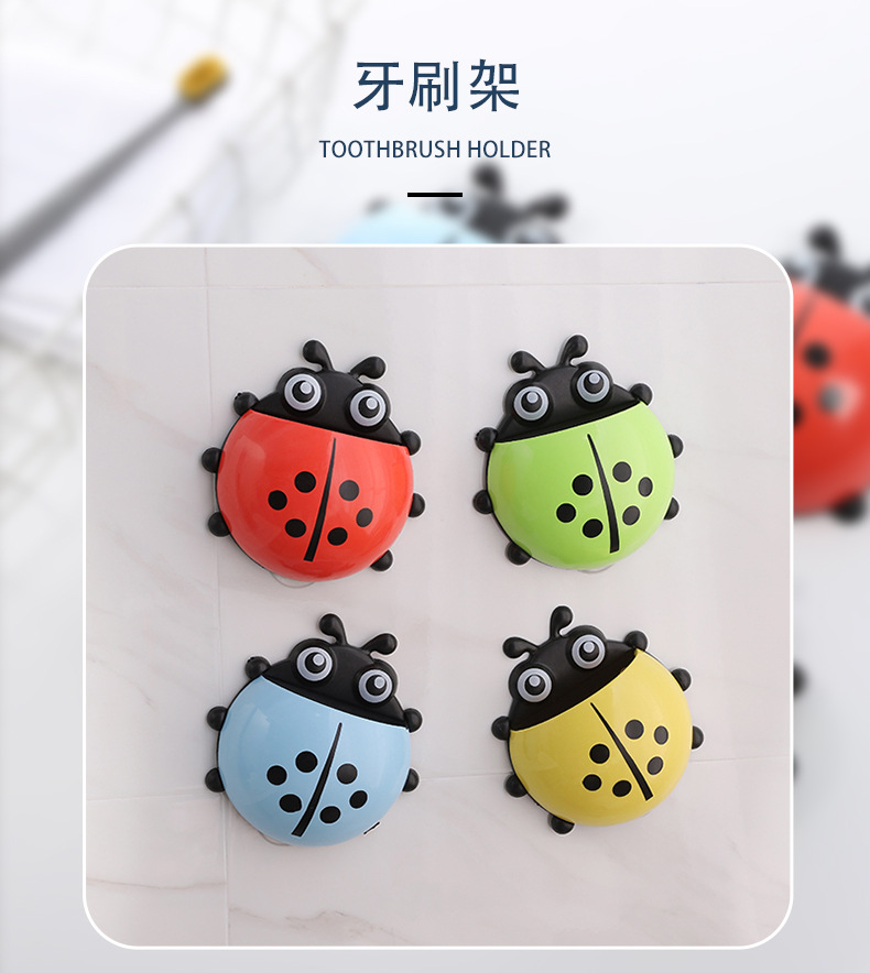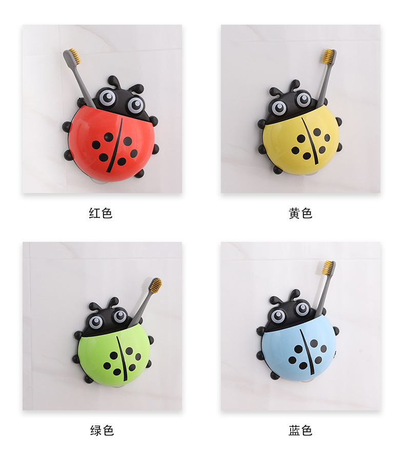 穴を開けない七星のテントウムシの歯ブラシホルダーの置物棚の漫画の壁式の収納のかわいい吸盤式の創意的な歯ブラシホルダー