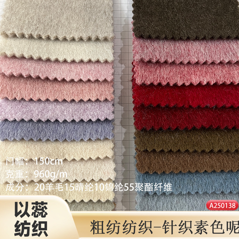 素色单面颗粒肌理羊毛呢保暖服装玩偶家居服外套时装面料
