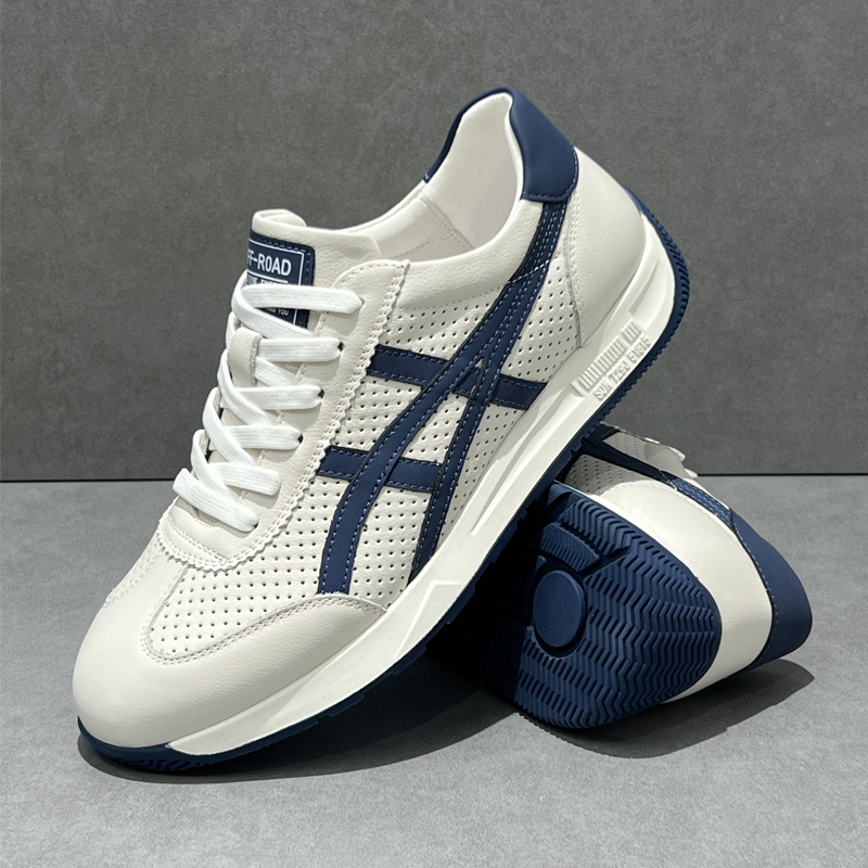 男の靴2025夏の新型の透かし彫りの通気性の小さい白の靴は超軽いです。