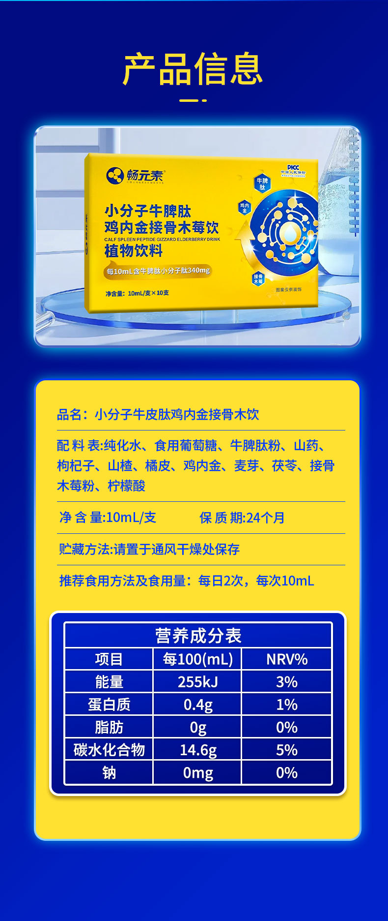 小分子牛脾臓ペプチド鶏内金脾臓アンモニアペプチド経口服液接骨木ベリー飲料鶏内金牛脾臓ペプチド経口服液