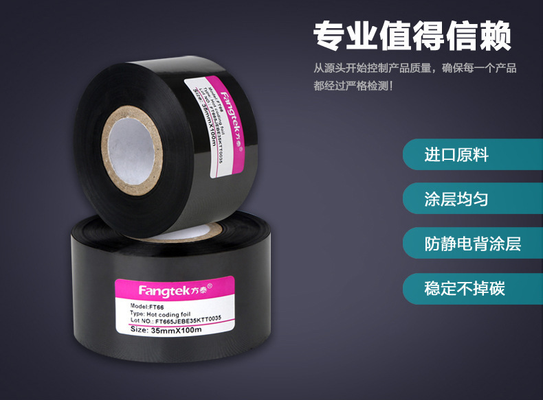方泰FT23混合カーボンテープ、吊り下げタグ、銅版紙、バーコード紙、カーボンテープ、証明書、粘着テープ、耐傷性、耐摩耗性