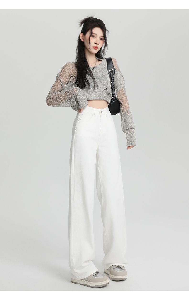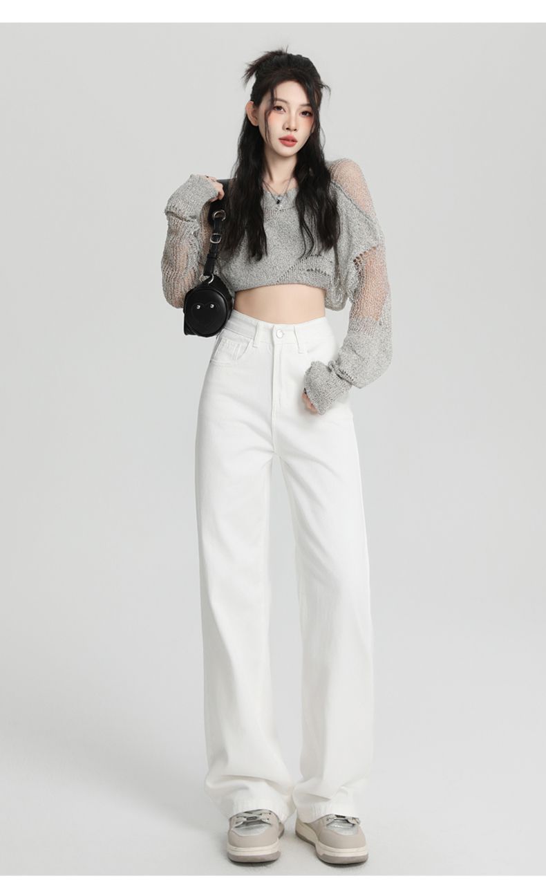 2023春夏の新型超柔試合紡直筒広脚ジーンズ女性百合が痩せている多色オプションjeans
