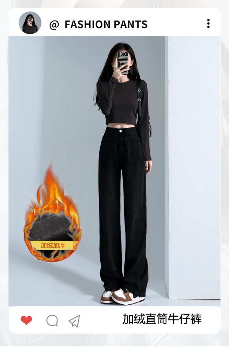 2024冬にベルベットを厚くした高腰ストレートジーンズの女性は、ゆったりとした垂れ下がった感じがして、ズボンを引きずっている