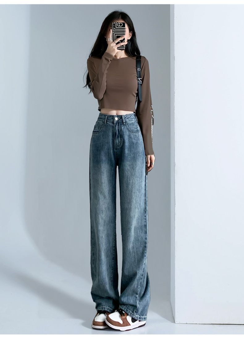 2024秋冬の新型廃土レトロな水洗いストレートジーンズの女性はだるくてリラックスしています。
