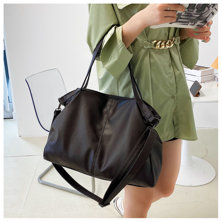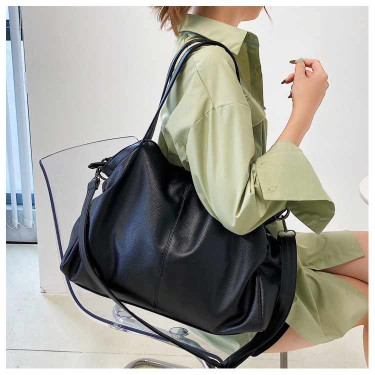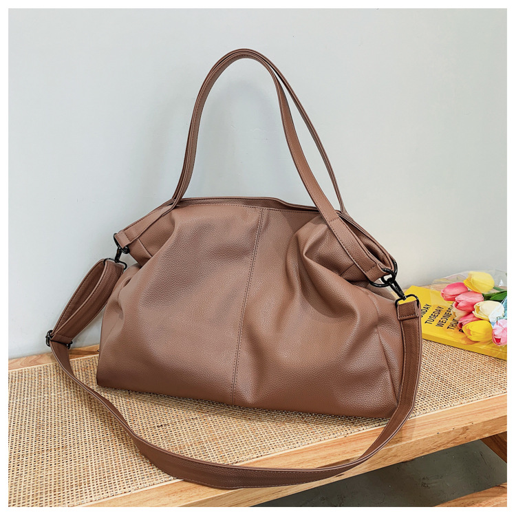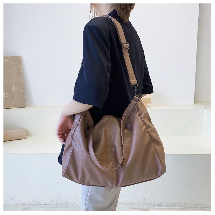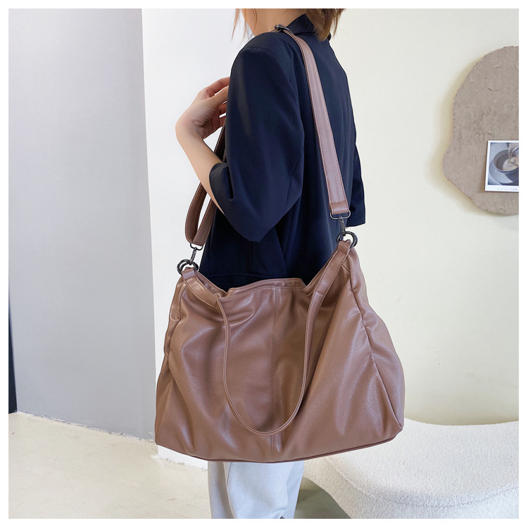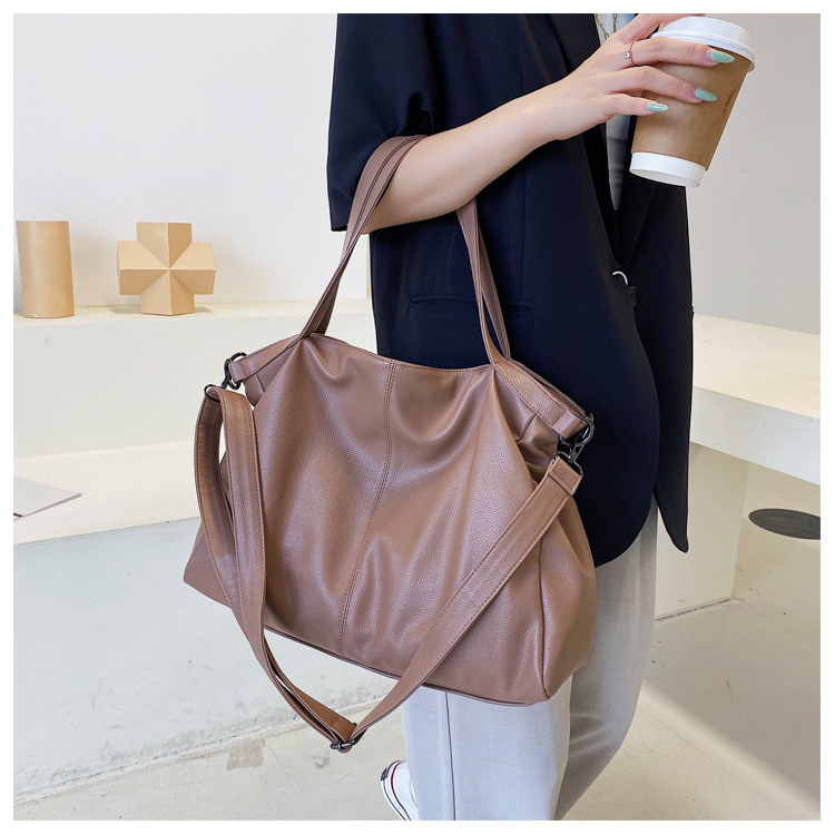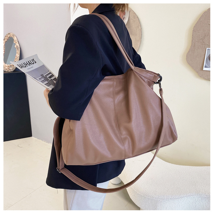 バッグレディース秋冬大容量高級感新作トートバッグレディース純色ソフトレザー質感通勤ワンショルダー斜め掛けショルダーバッグ