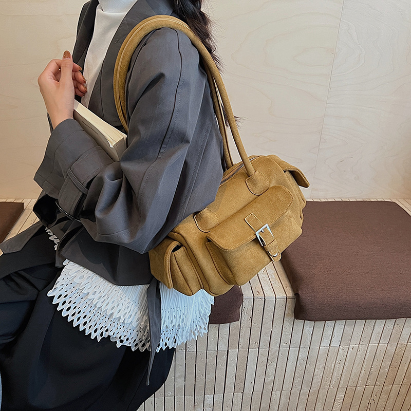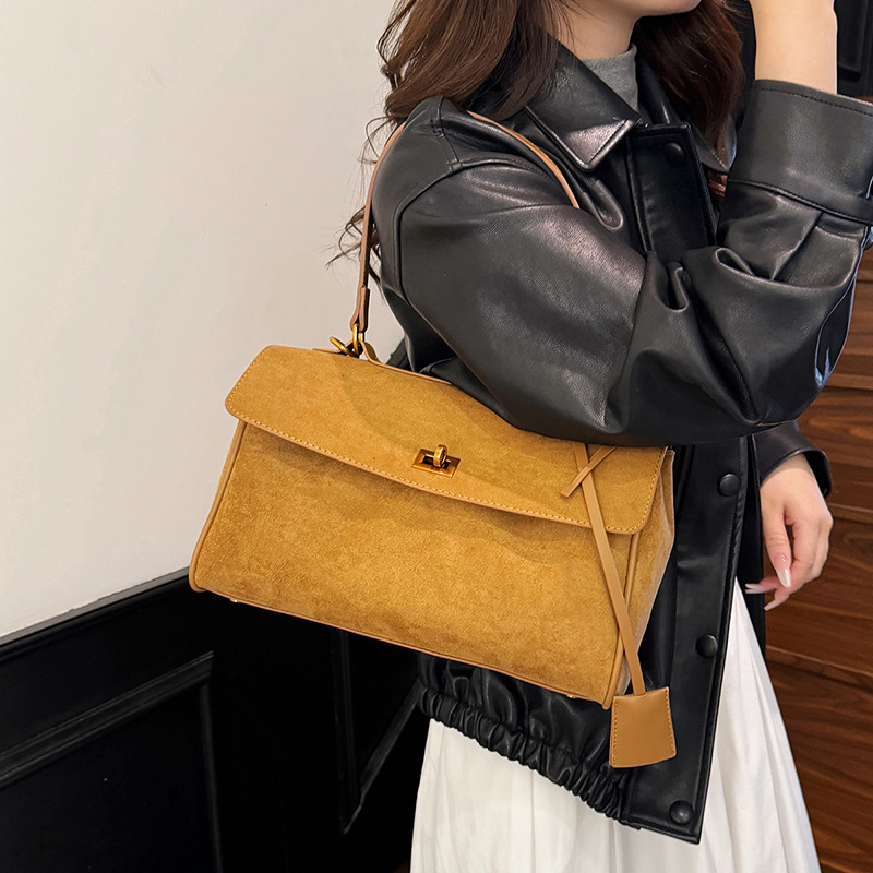 秋冬季复古磨砂包包女2025新款通勤单肩斜挎包麂皮绒面手提托特包