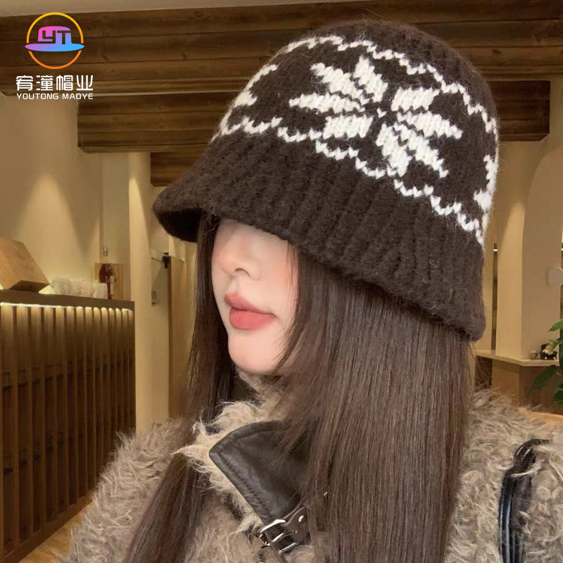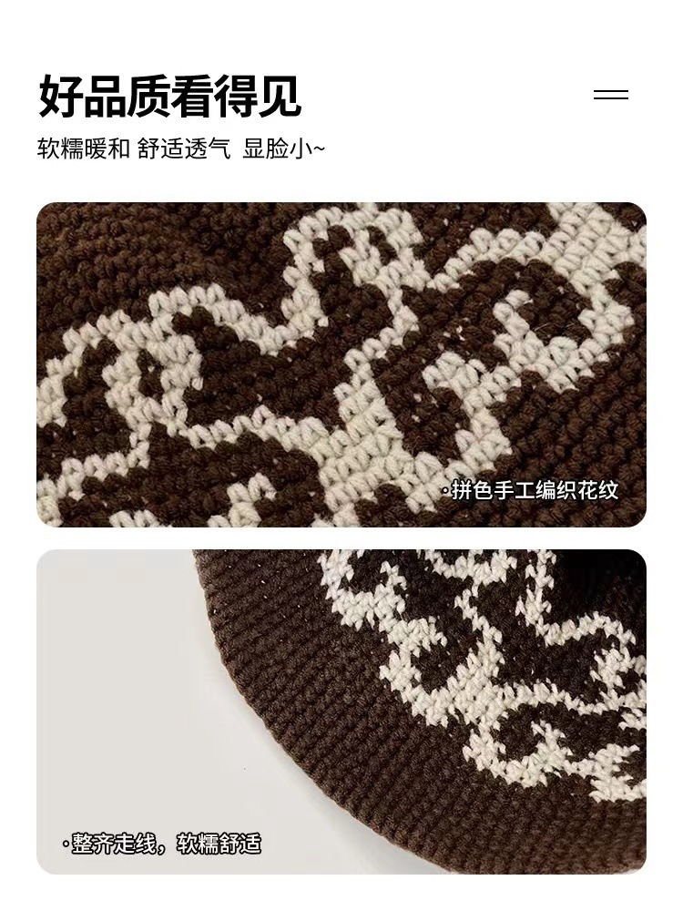 秋冬百合ニット漁師帽女子韓系insファッション保温毛糸盆帽復古文芸バケツ帽